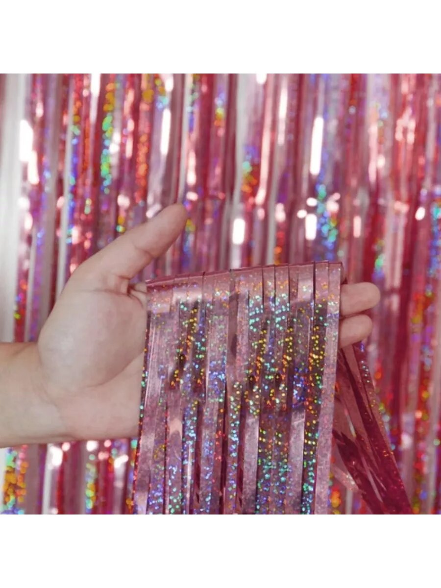 Купить Занавес Дождик Лазерный, Розовый, Голография, 100*200 см, 1 шт.