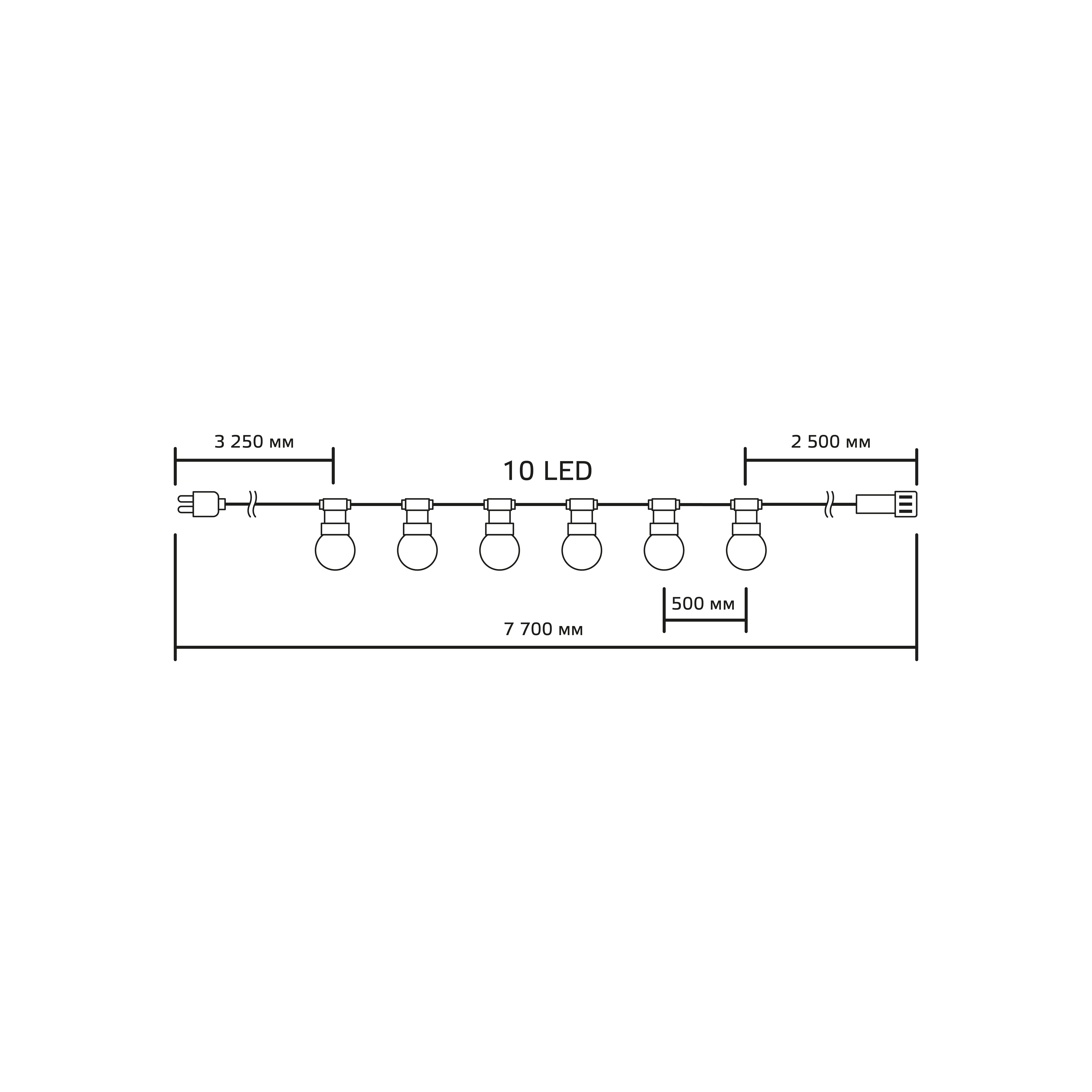 Гирлянда GAUSS HL062 светодиодная, 10 ламп, 7,7 м, ip44, белый