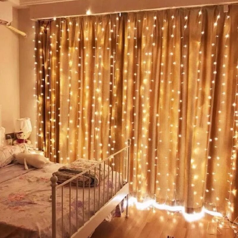 Гирлянда штора электрическая гирлянда занавес штора 3х3 метра, новогодняя гирлянда на окно/тёплый белый/золотой интересное: