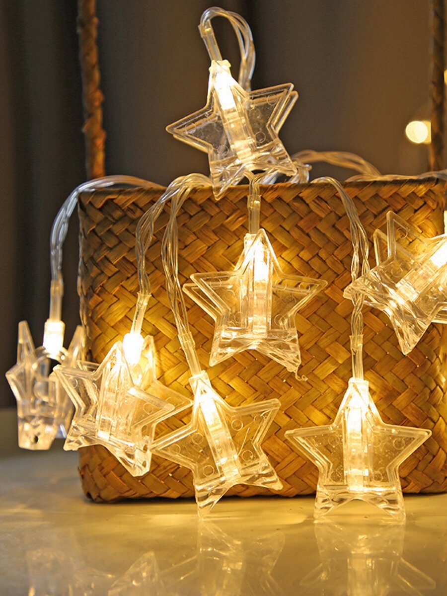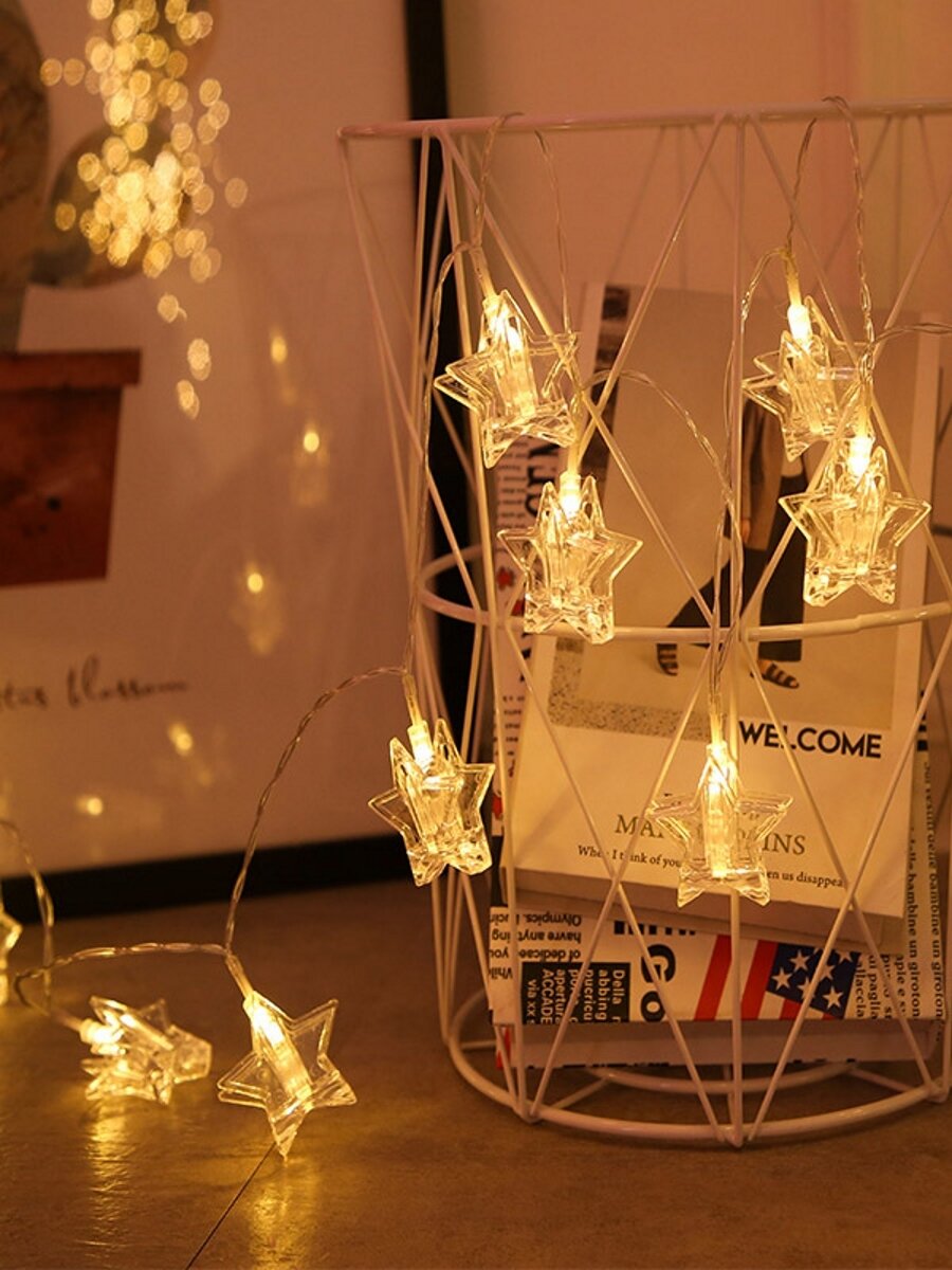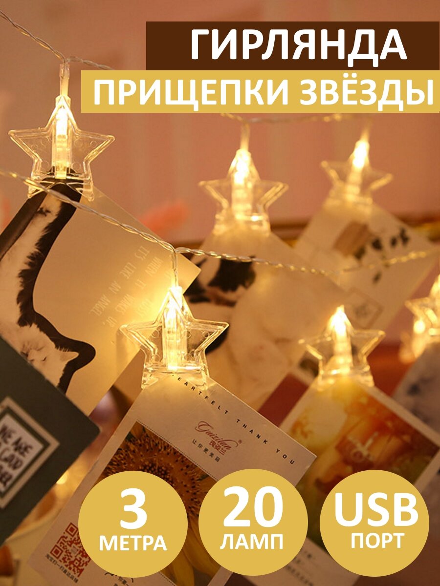 Электрическая гирлянда светодиодная Звезды, длина 3 метра, 20 ламп, желтое свечение. 1 режим, прозрачный шнур, степень защиты IP20. интересное: