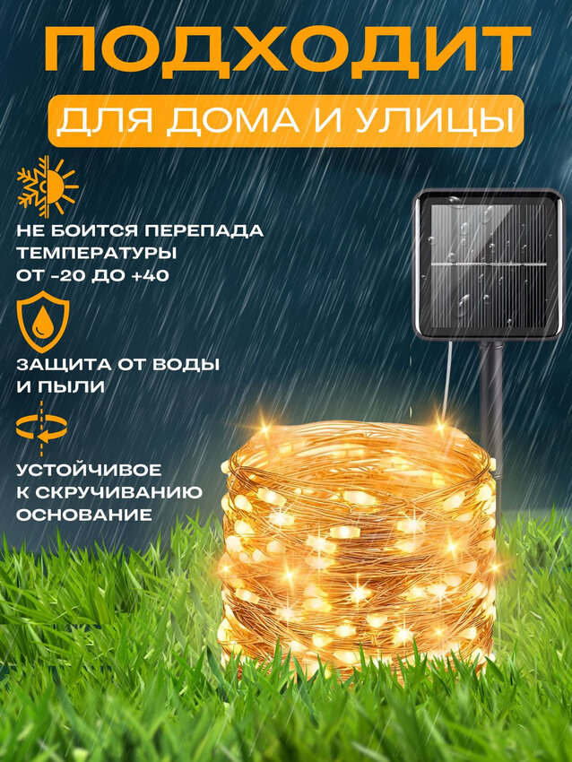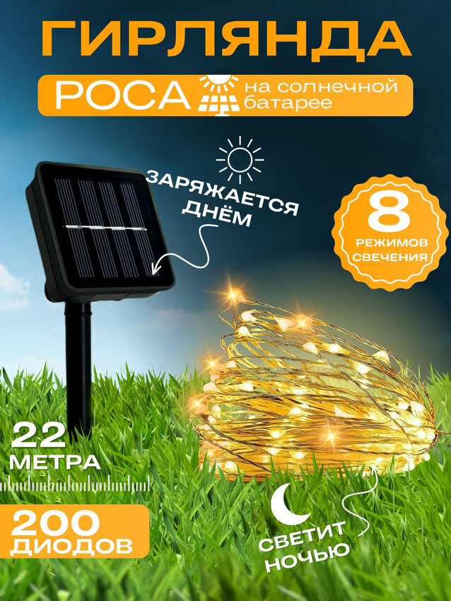 Гирлянда нить роса уличная на солнечной батарее / Гирлянда нить роса 22 м интересное: