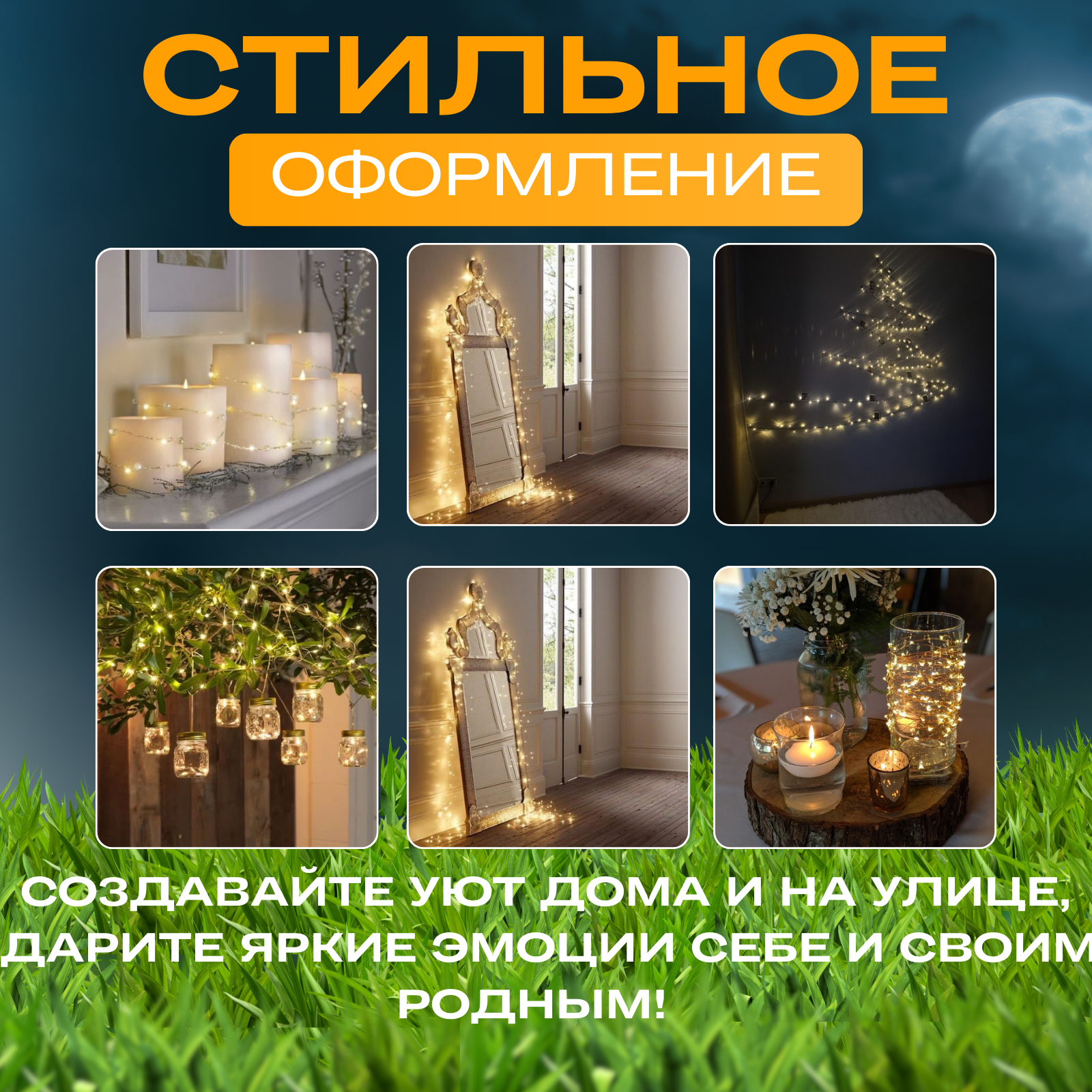 Гирлянда на солнечных батареях уличная 22 м садовая нить роса интересное: