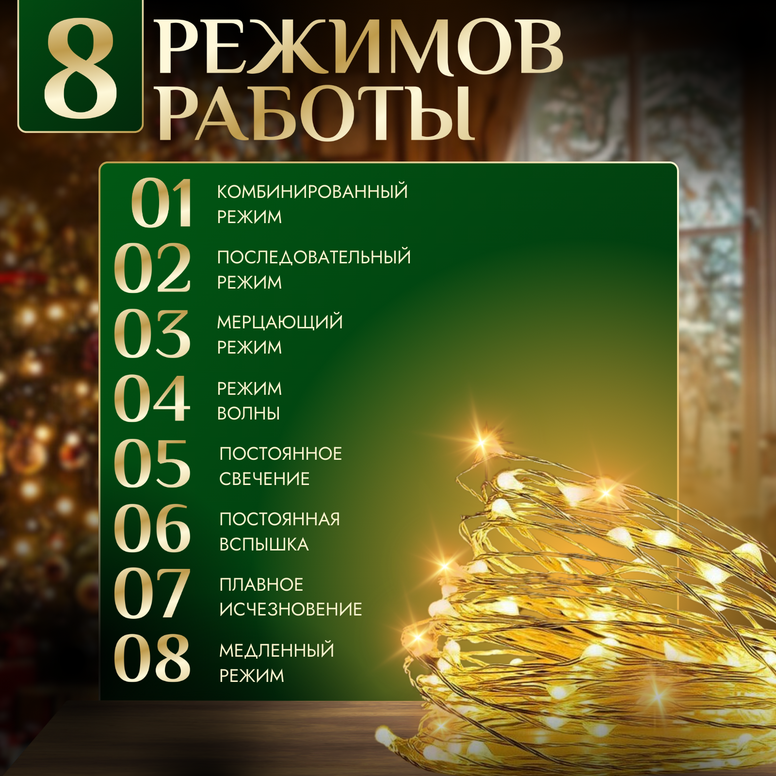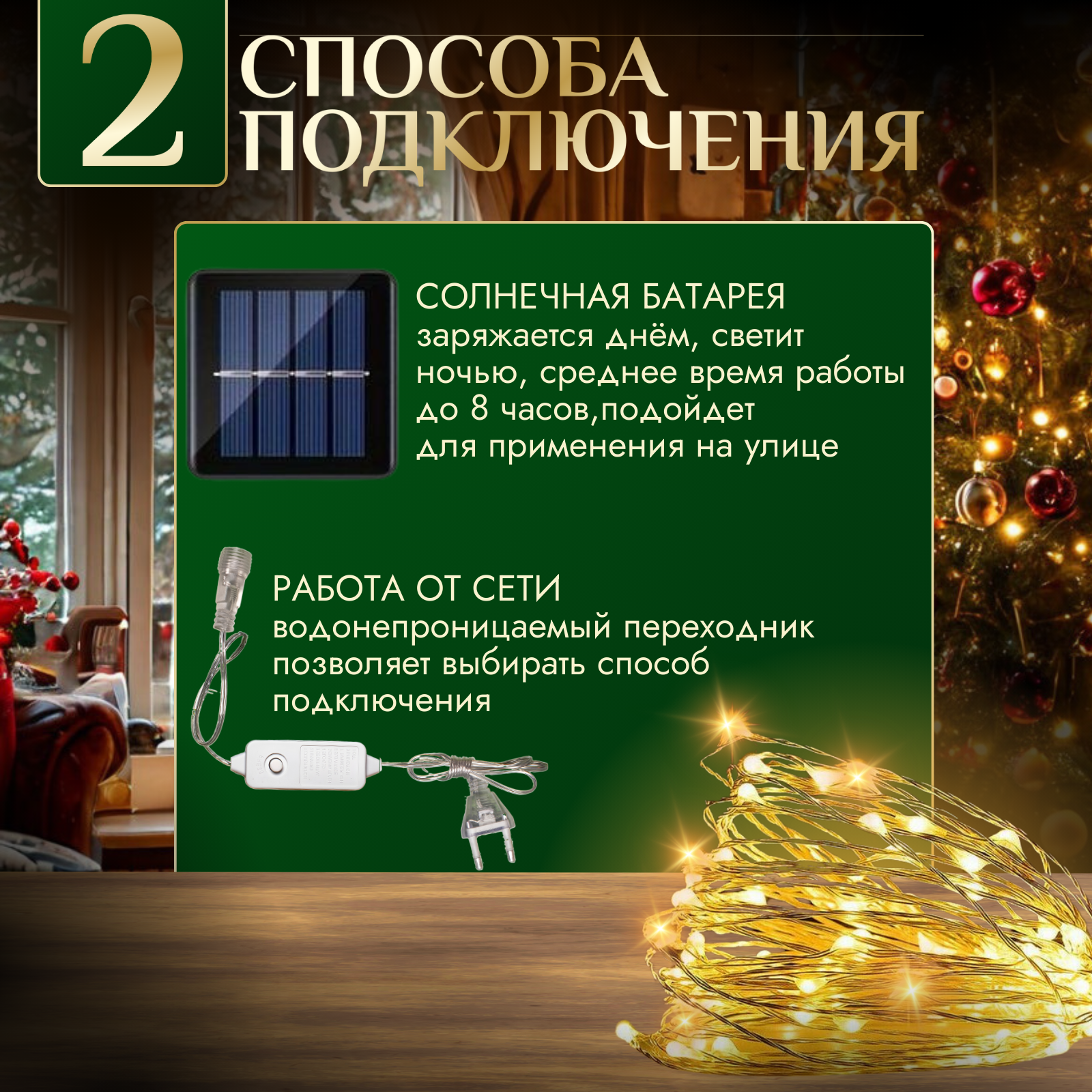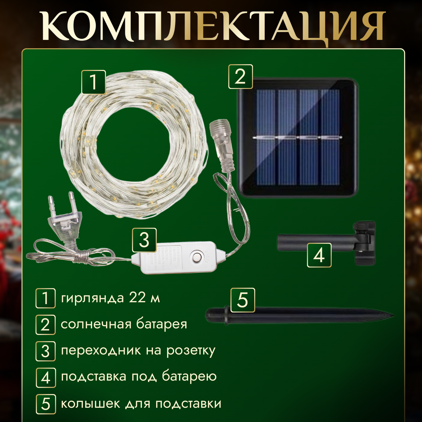 Гирлянда нить роса уличная на солнечной батарее / Гирлянда нить роса 22 м