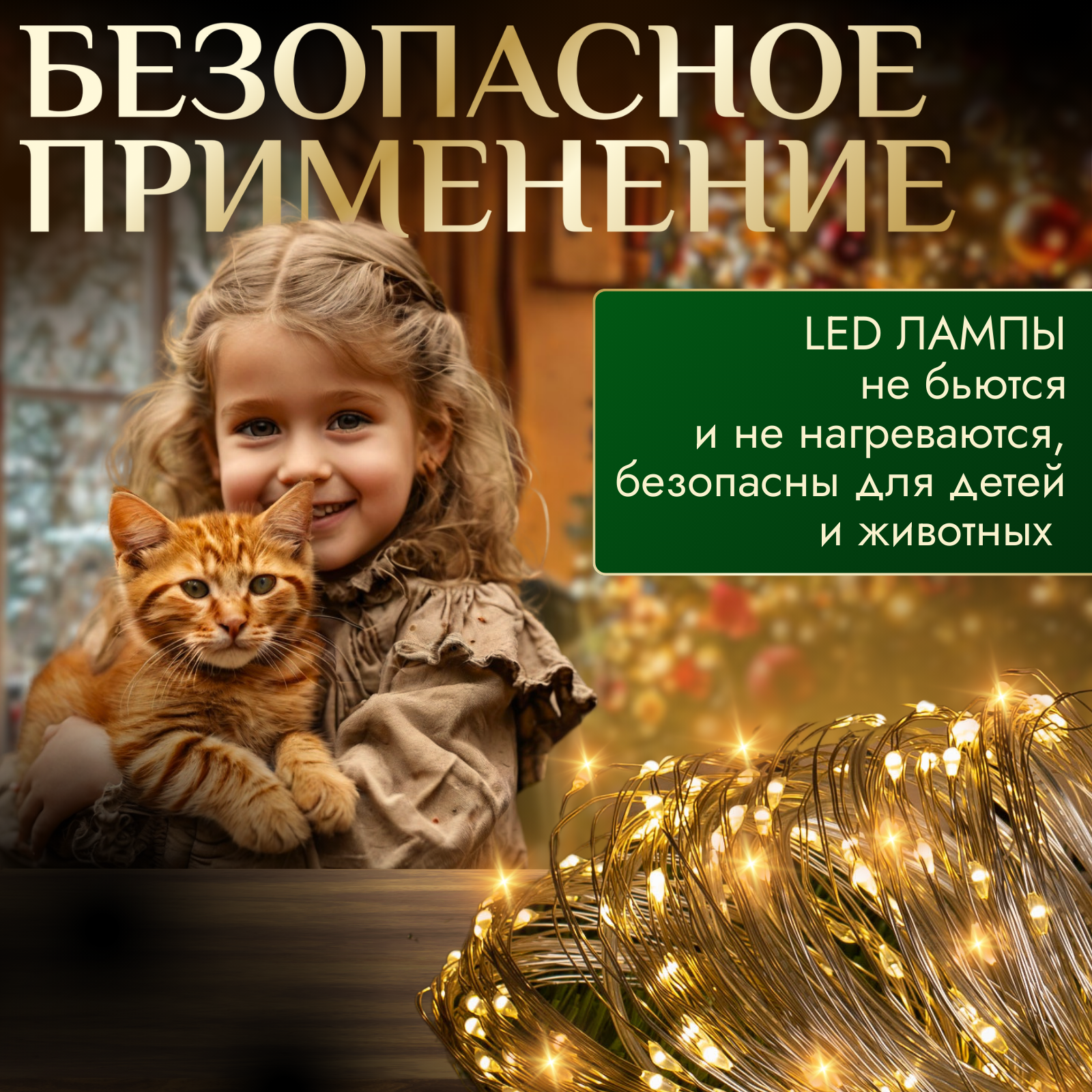 Гирлянда Роса 10м, питание от батареек АА, светодиодная
