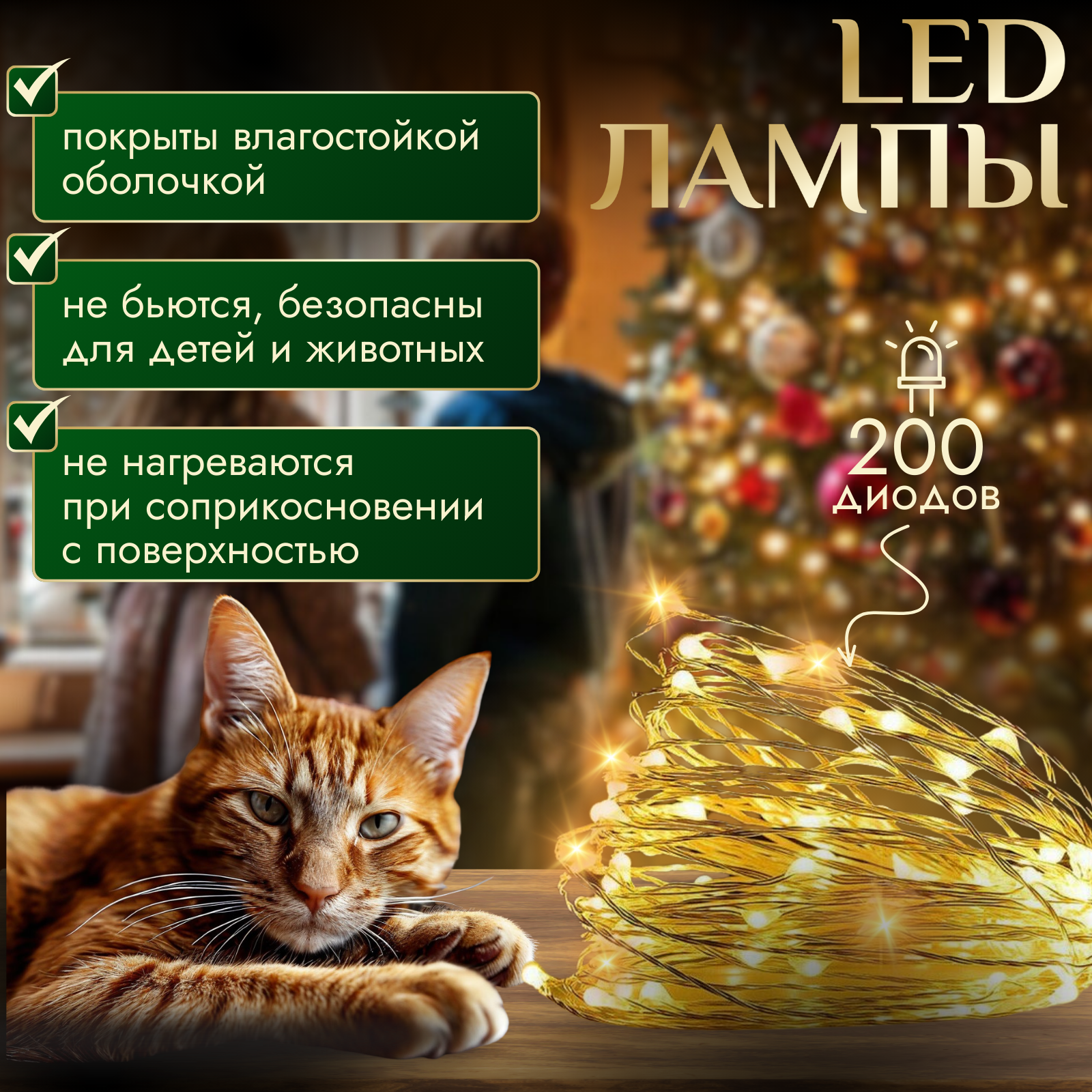 Гирлянда на солнечной батарее и от сети уличная 22 м садовая, нить, роса