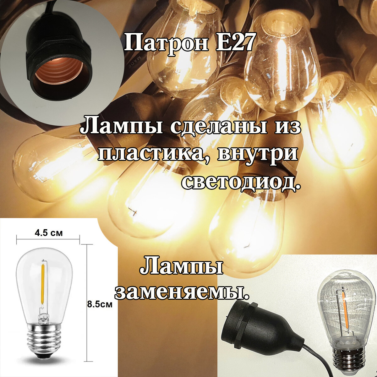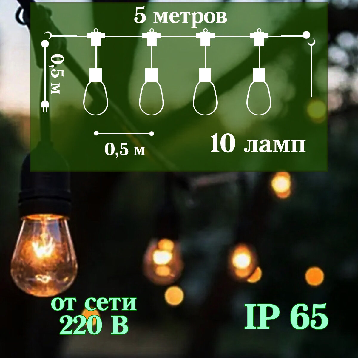 Уличная гирлянда "Ретро" 10 ламп на 5 метров интересное: