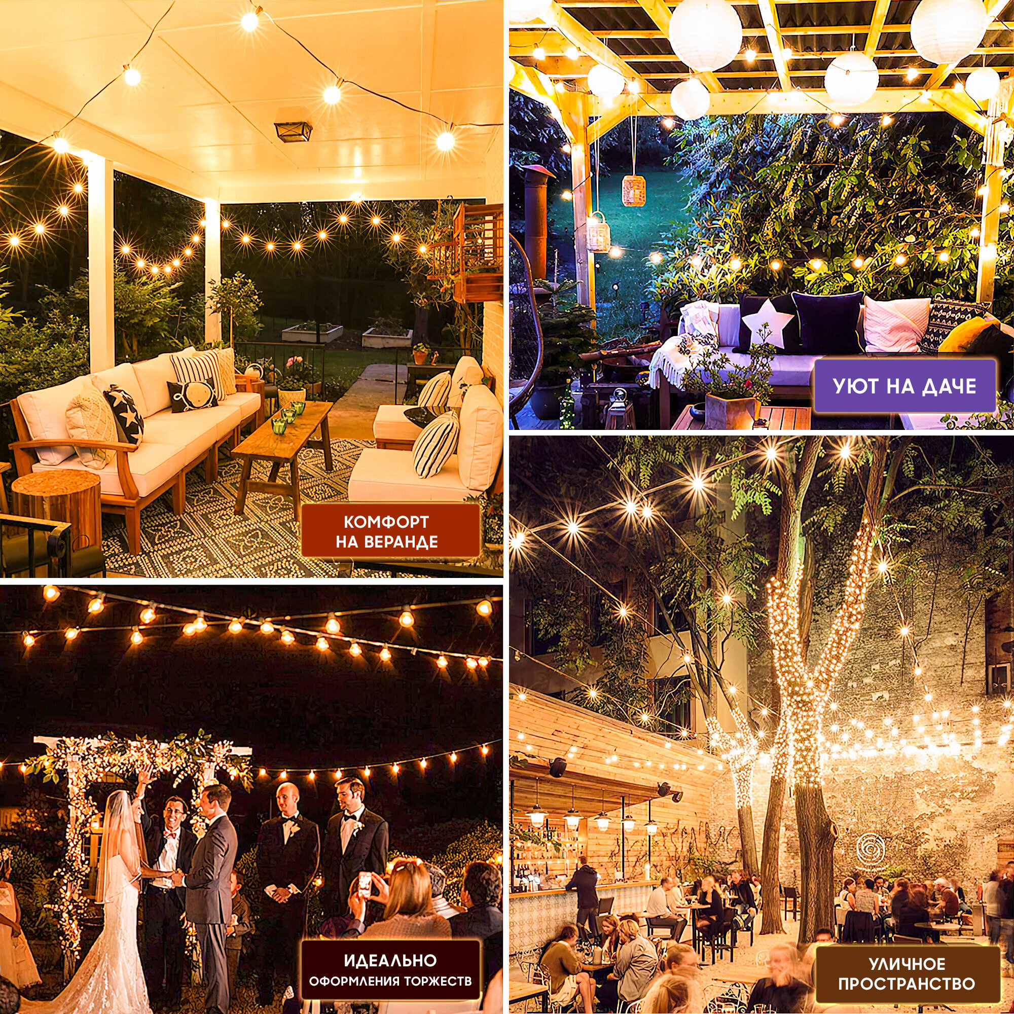Ниже Вы можете прочитать отзывы на Ретро гирлянда садовая уличная 25 метров, ознакомится с подробными характеристиками, посмотреть интересные обзоры и фотографии на Ретро гирлянда садовая уличная 25 метров.