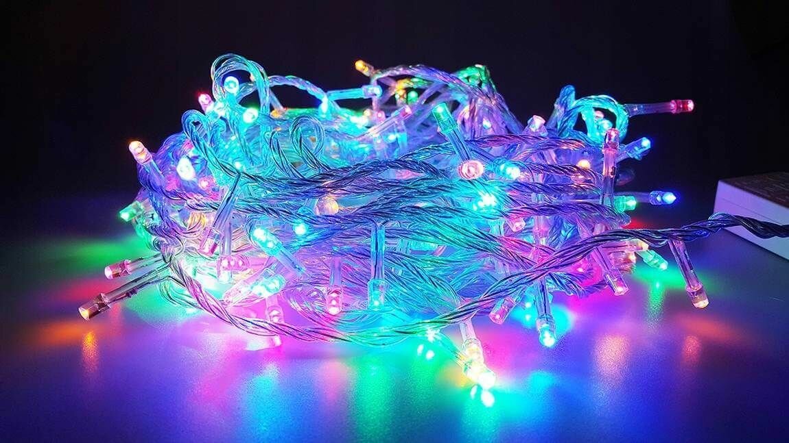 Светодиодная гирлянда уличная, для помещения 50 метров / 250 светодиодов / 8 режимов / на Бабине / Питание от сети 220В / Разноцветная
