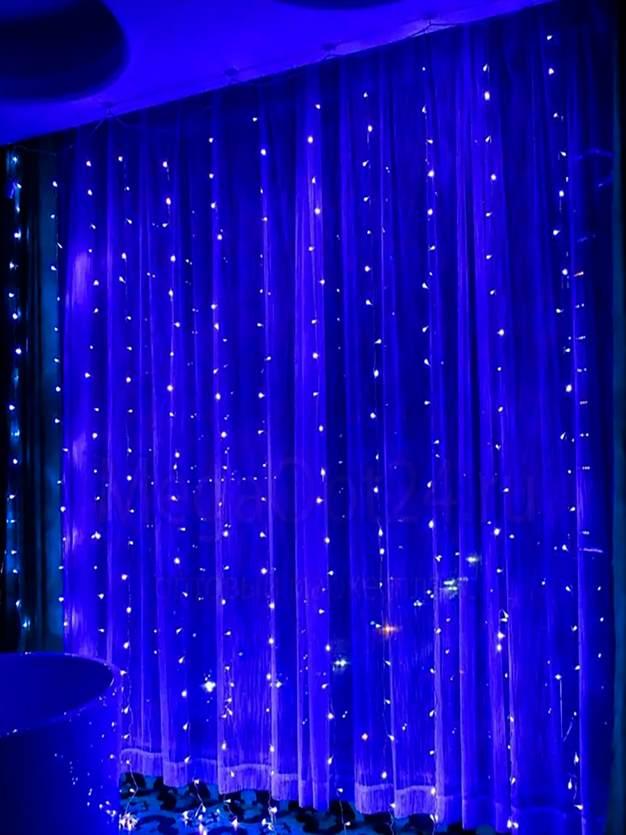 Светодиодная гирлянда занавес, 3х2 метра, 320 LED, 8 режимов, синяя