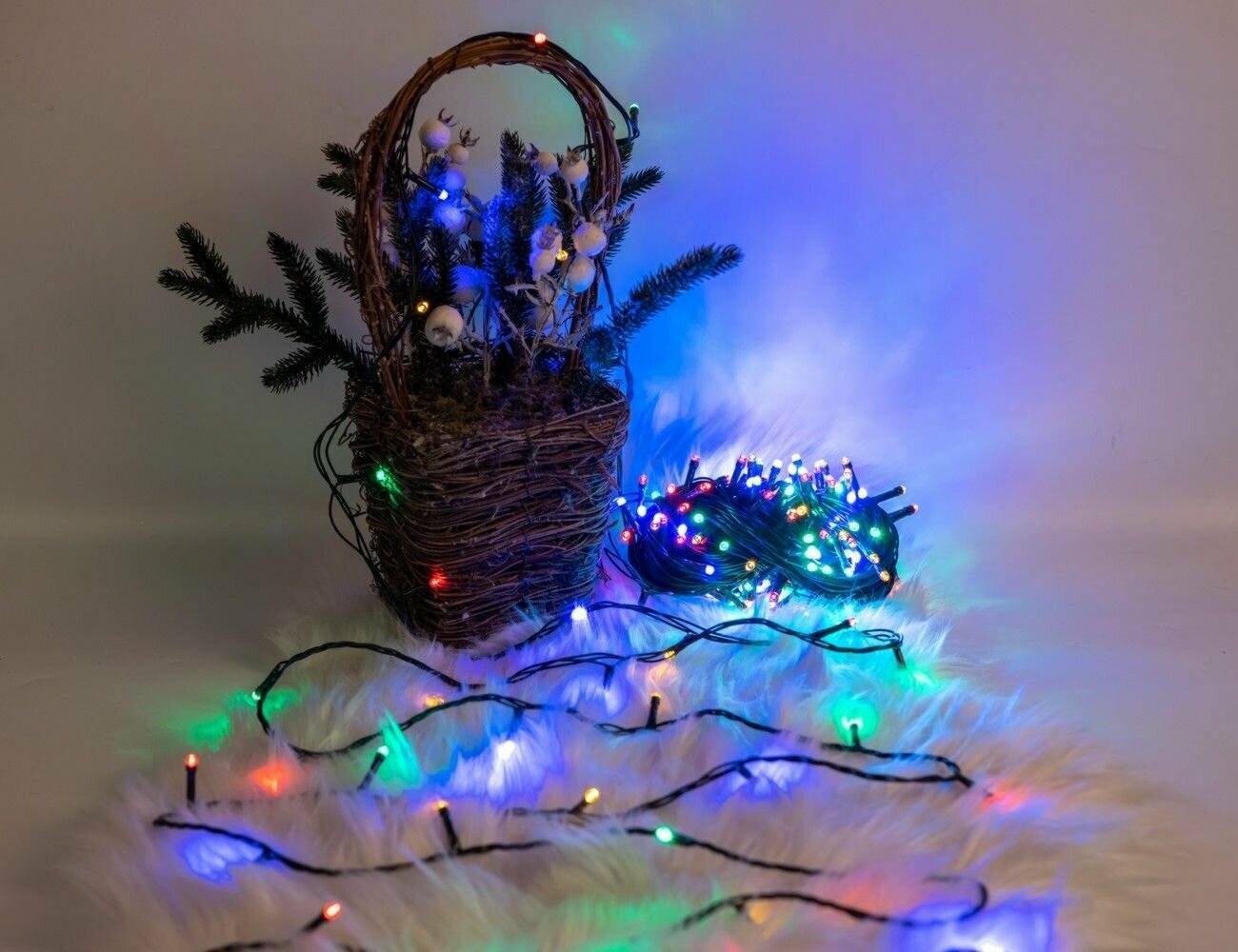 Светодиодная гирлянда 100 разноцветных LED ламп 10 м, зеленый ПВХ, контроллер, IP44, SNOWHOUSE LD100C-GM интересное:
