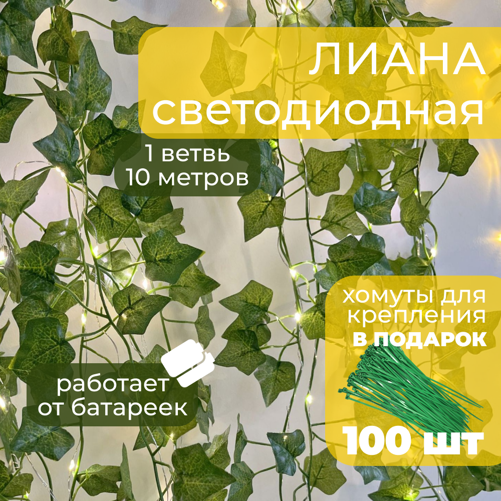 Гирлянда на батарейках, светодиодная лента 10 метров Лиана интересное: