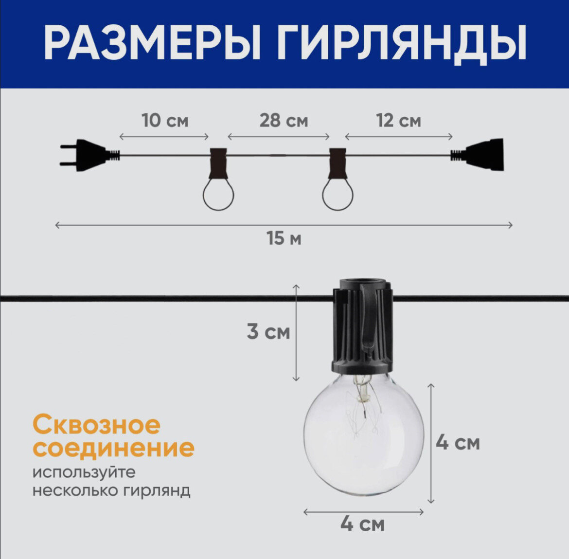Ниже Вы можете прочитать отзывы на Гирлянда уличная 15.5 метров 54 ламочки, ознакомится с подробными характеристиками, посмотреть интересные обзоры и фотографии на Гирлянда уличная 15.5 метров 54 ламочки.