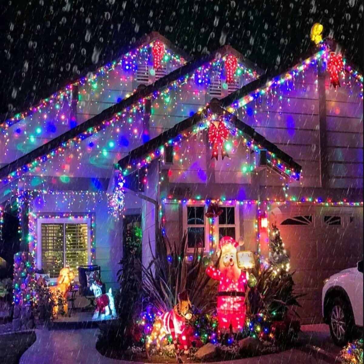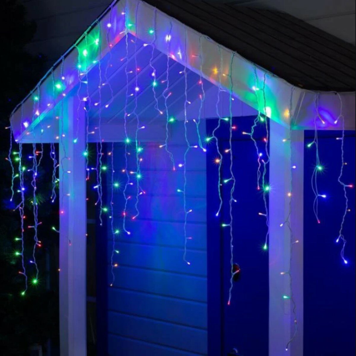 Купить Светодиодная гирлянда уличная Цветная Бахрома 12 м 300 ламп 8 режимов на солнечной батареи