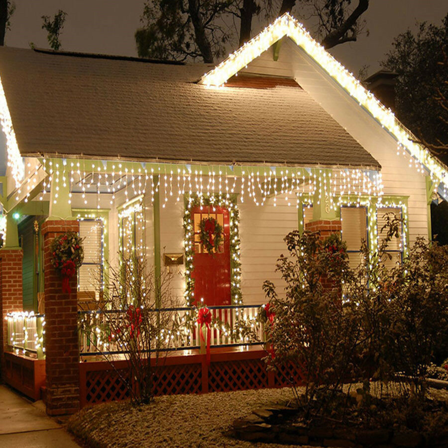 Светодиодная гирлянда уличная Белая Бахрома 12 м 300 ламп 8 режимов на солнечной батареи