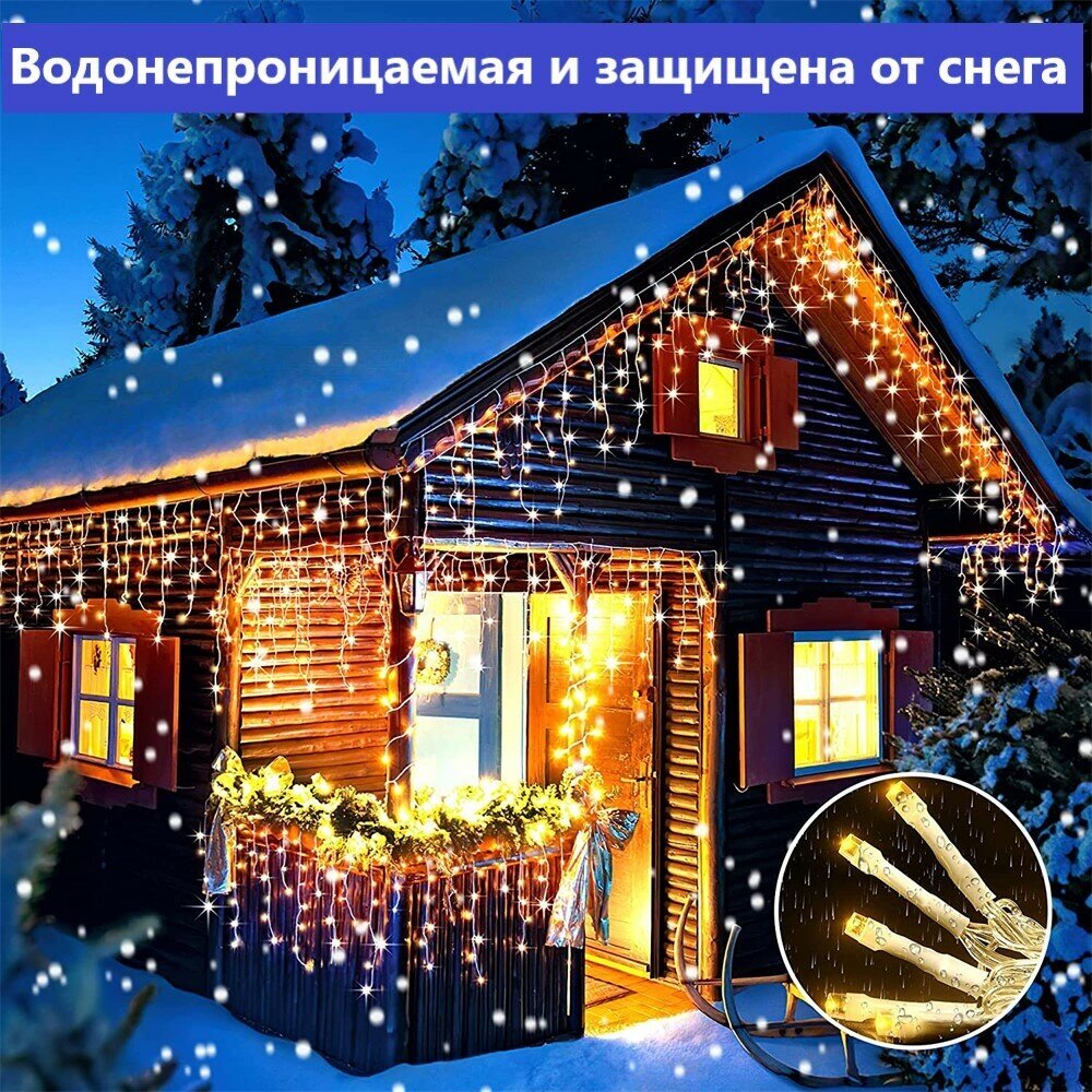 Светодиодная гирлянда уличная Желтая Бахрома 3 м 128 ламп 8 режимов на солнечной батареи интересное: