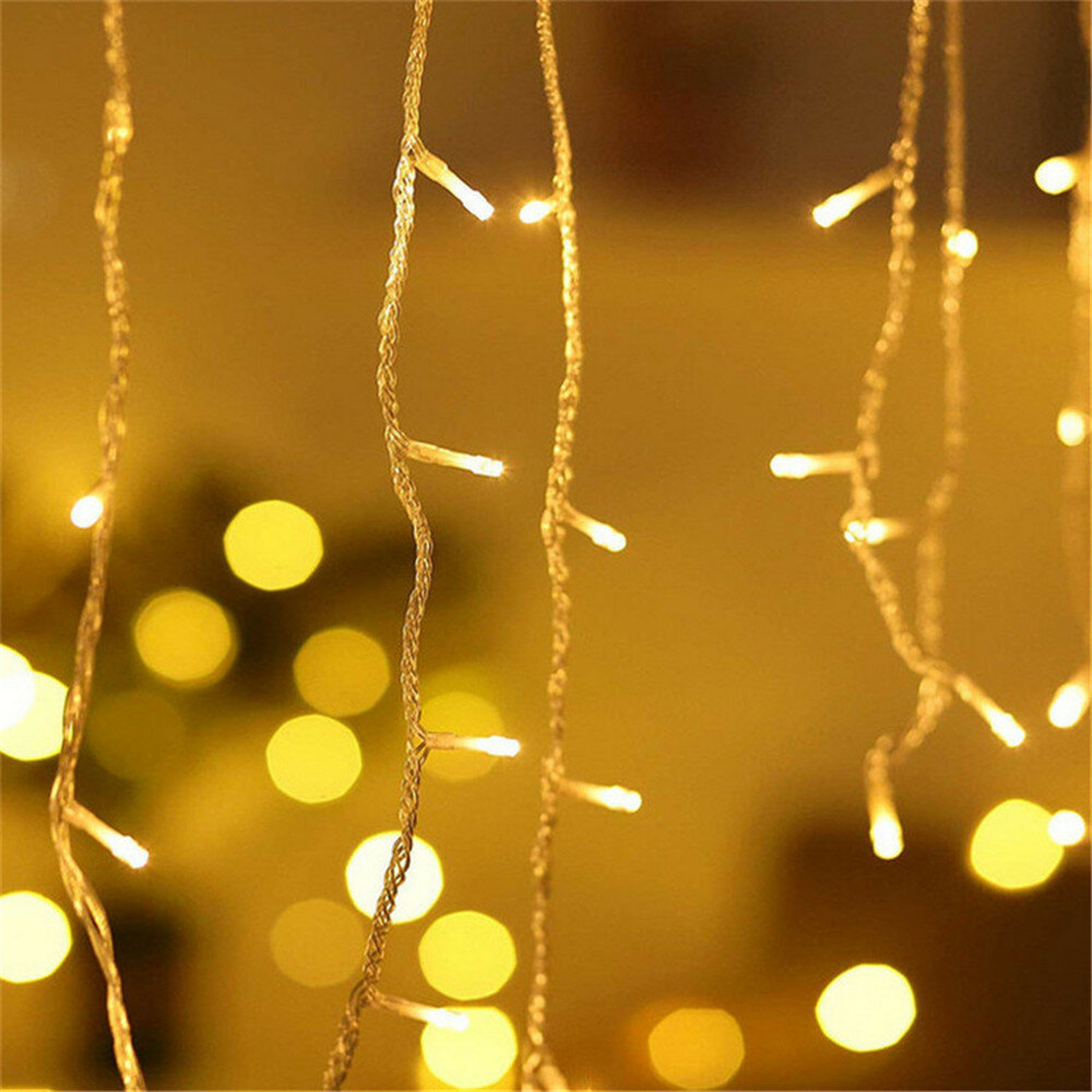 Купить Светодиодная гирлянда уличная Желтая Бахрома 3 м 128 ламп 8 режимов на солнечной батареи