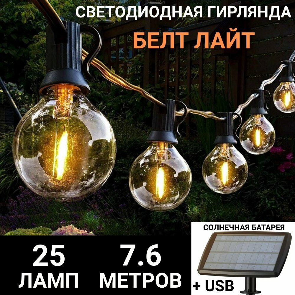 Уличная гирлянда белт-лайт 25 LED на солнечной батарее, USB, 7,6 метров ANYSMART интересное: