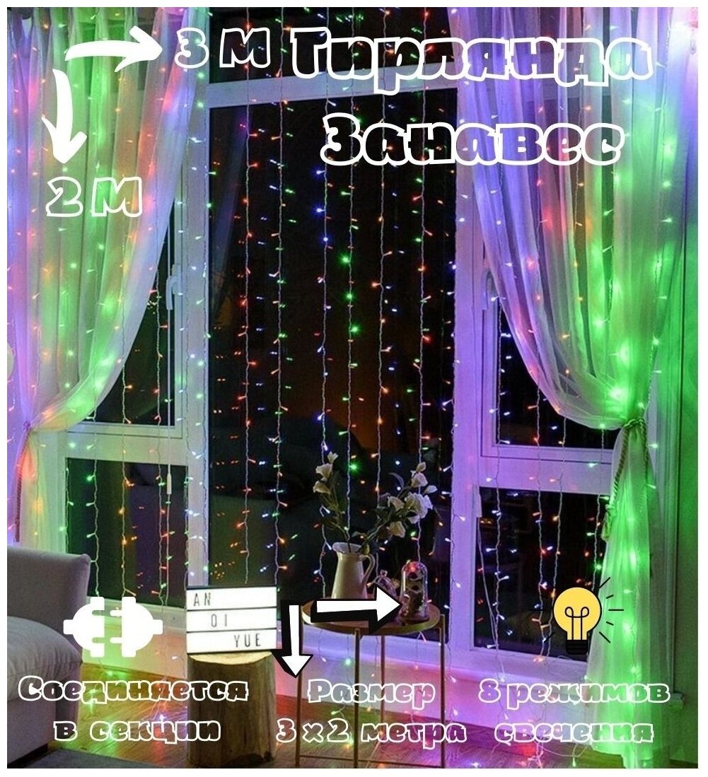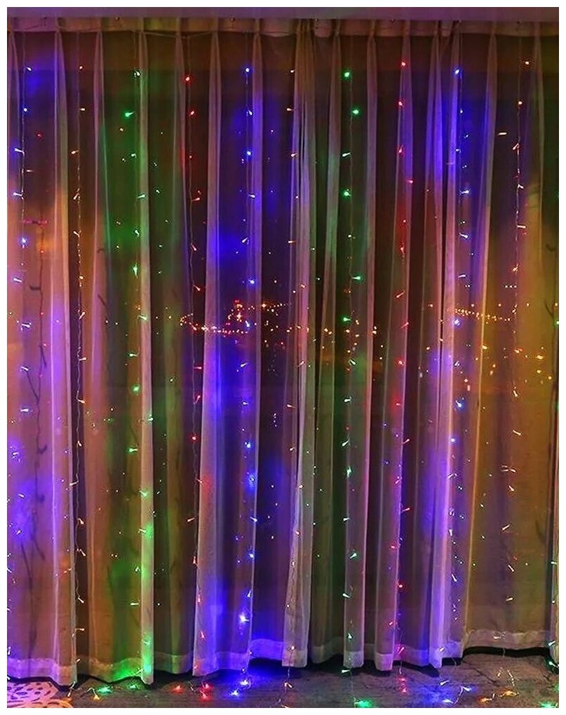 Новогодняя гирлянда Занавес/дождь/штора/на окно , 3/2 метра , разноцветная интересное: