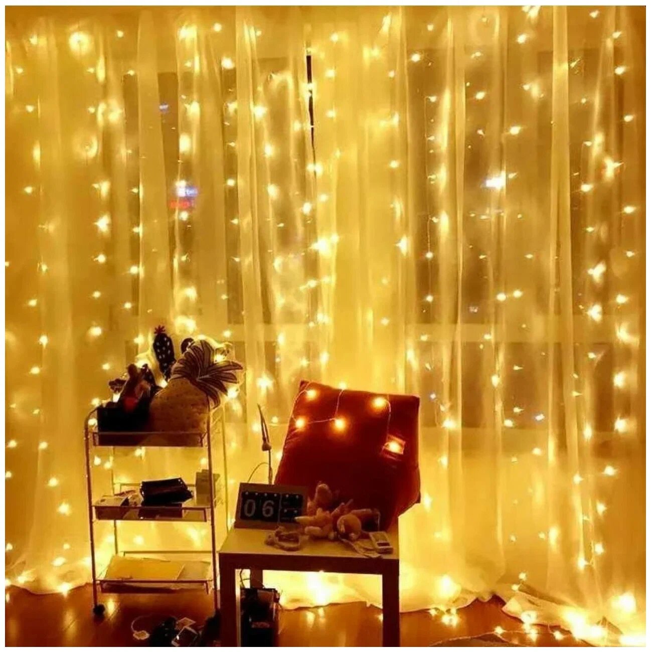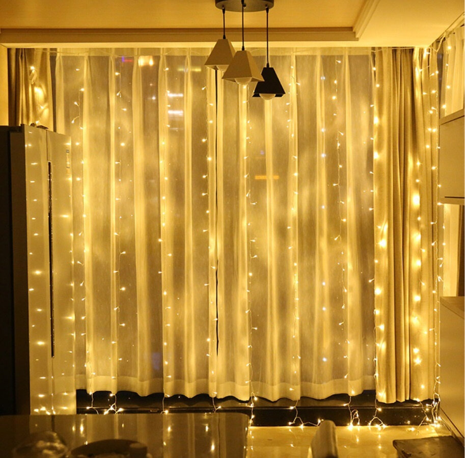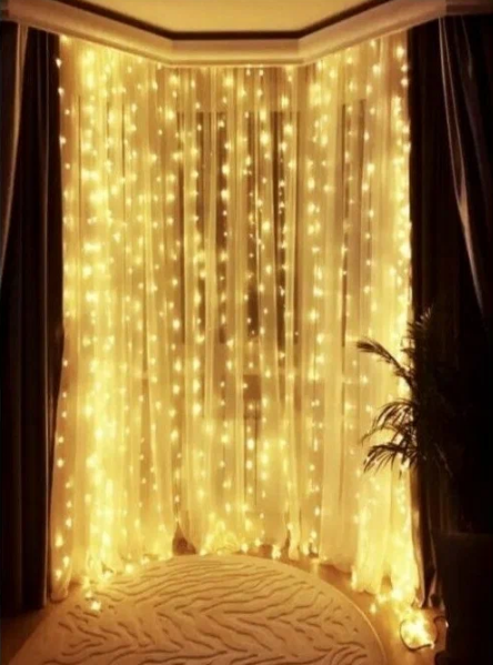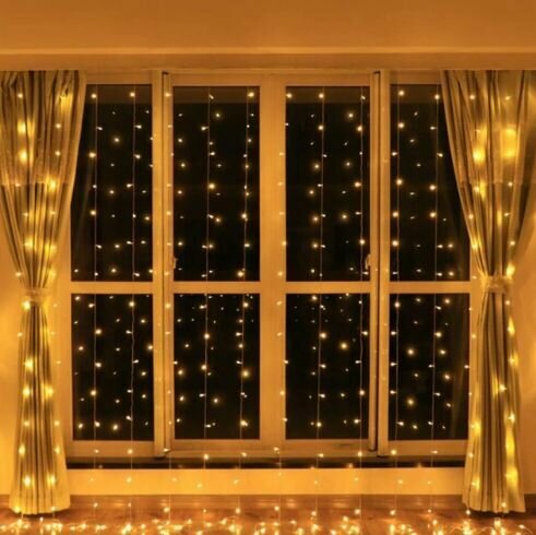 Гирлянда электрическая светодиодная 3х3 м. Желтая / Гирлянда штора занавес новогодняя