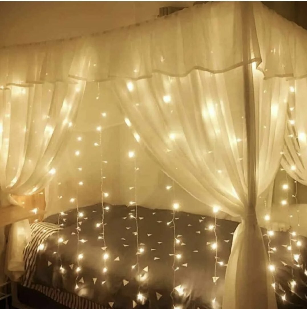 Гирлянда электрическая светодиодная 3х3 метра, Белая / Гирлянда штора занавес новогодняя разноцветный