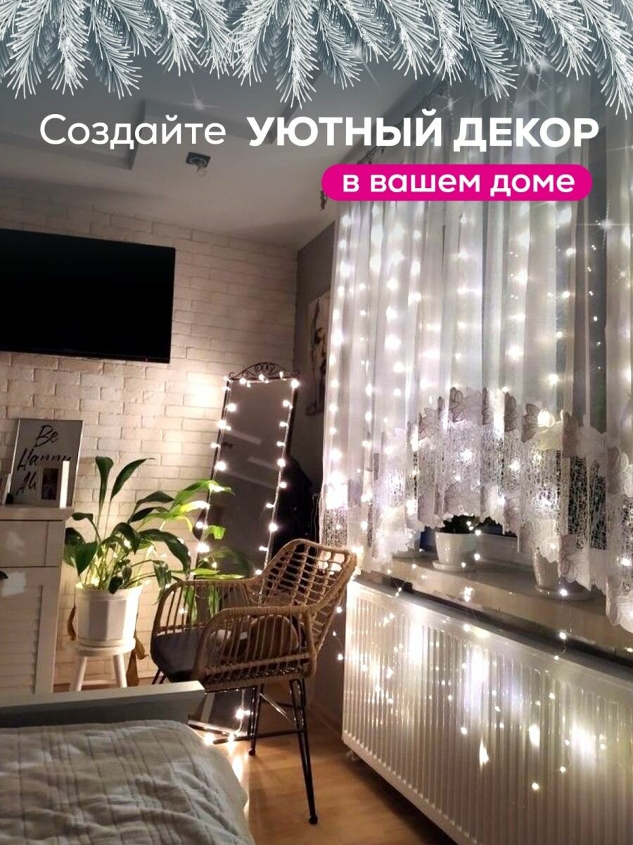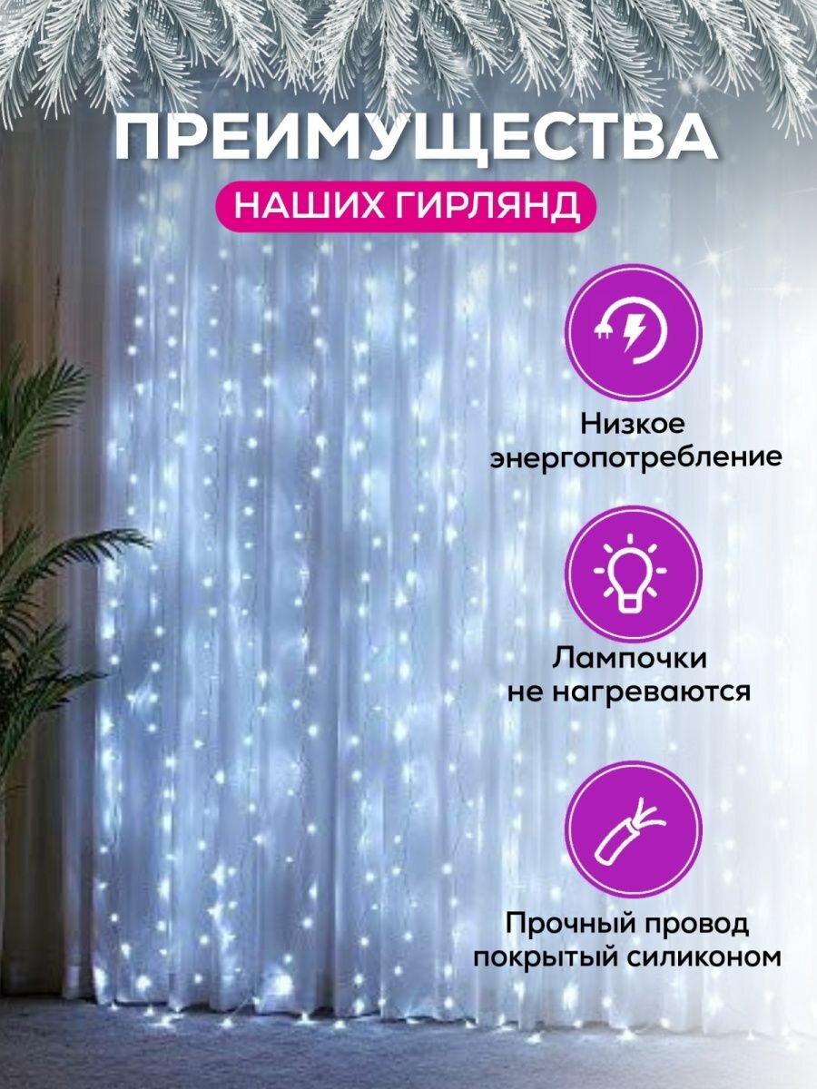 Гирлянда штора 3х2 на окно, холодный белый интересное: