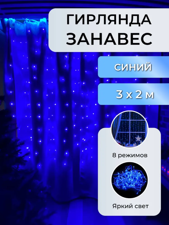 Ниже Вы можете прочитать отзывы на Гирлянда штора 3х2 на окно, синий, ознакомится с подробными характеристиками, посмотреть интересные обзоры и фотографии на Гирлянда штора 3х2 на окно, синий.