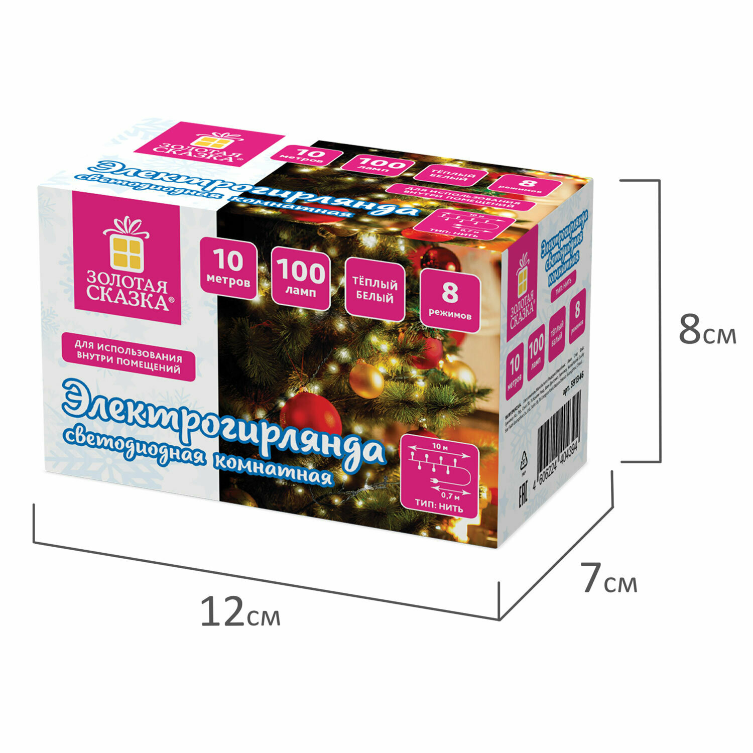 Электрогирлянда-нить комнатная Золотая сказка Стандарт, 10 м, 100 LED, холодный белый свет, 220 V, контроллер