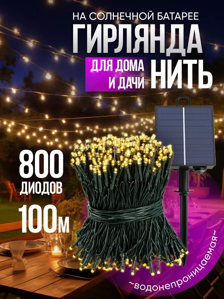 Гирлянда уличная на солнечной батарее для сада 100 метров интересное: