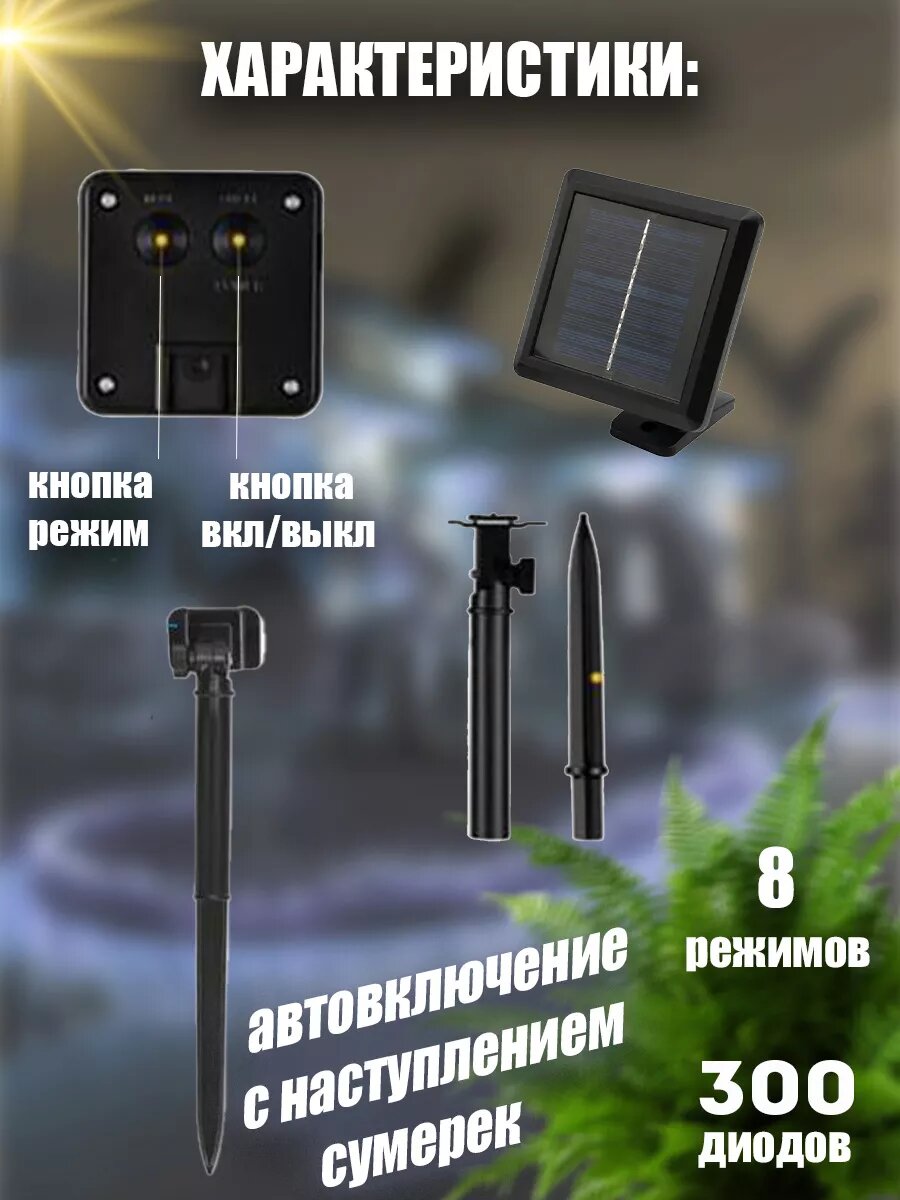 Гирлянда уличная на солнечной батарее для сада 30 метров интересное: