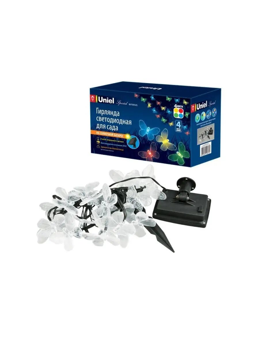Гирлянда садовая Uniel, Butterflies USL-S-129/PT4000, солн бат, подвес, пласт, 20 светодиодов