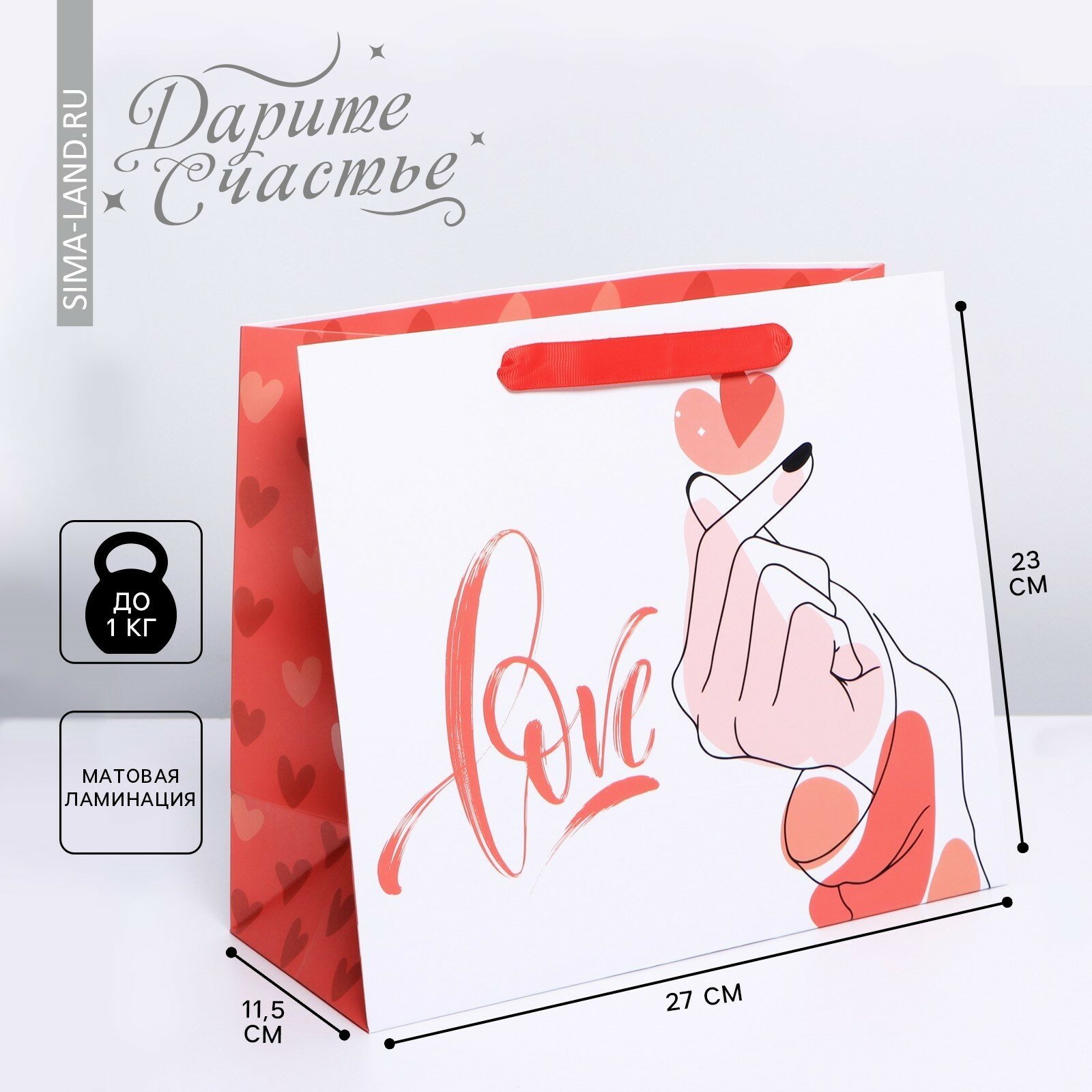 Пакет подарочный ламинированный «Люблю», 23 × 27 × 11,5 см