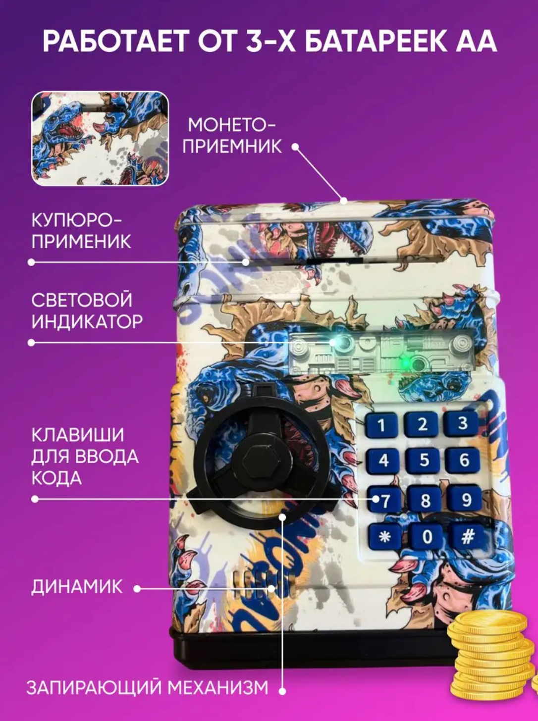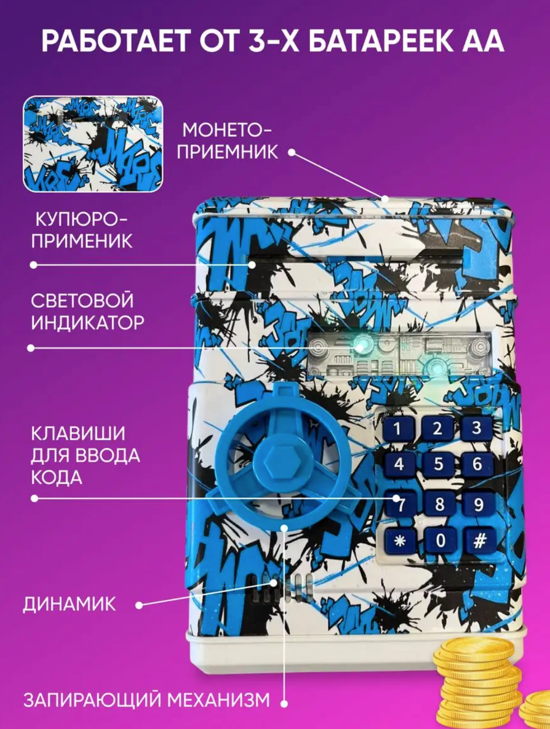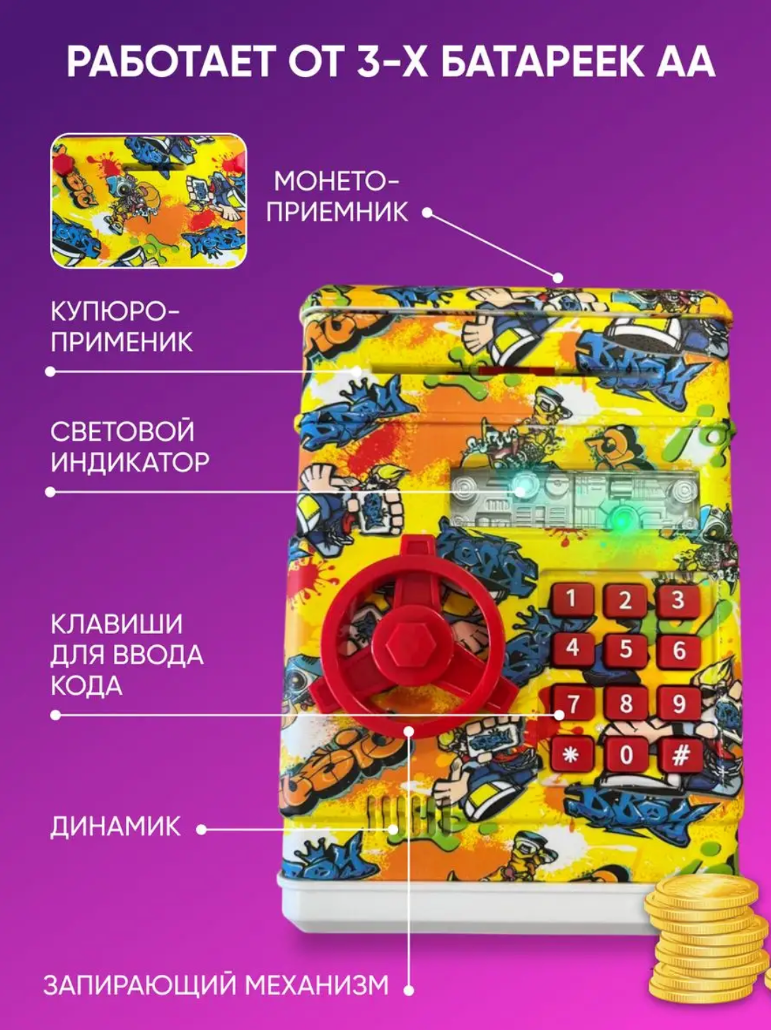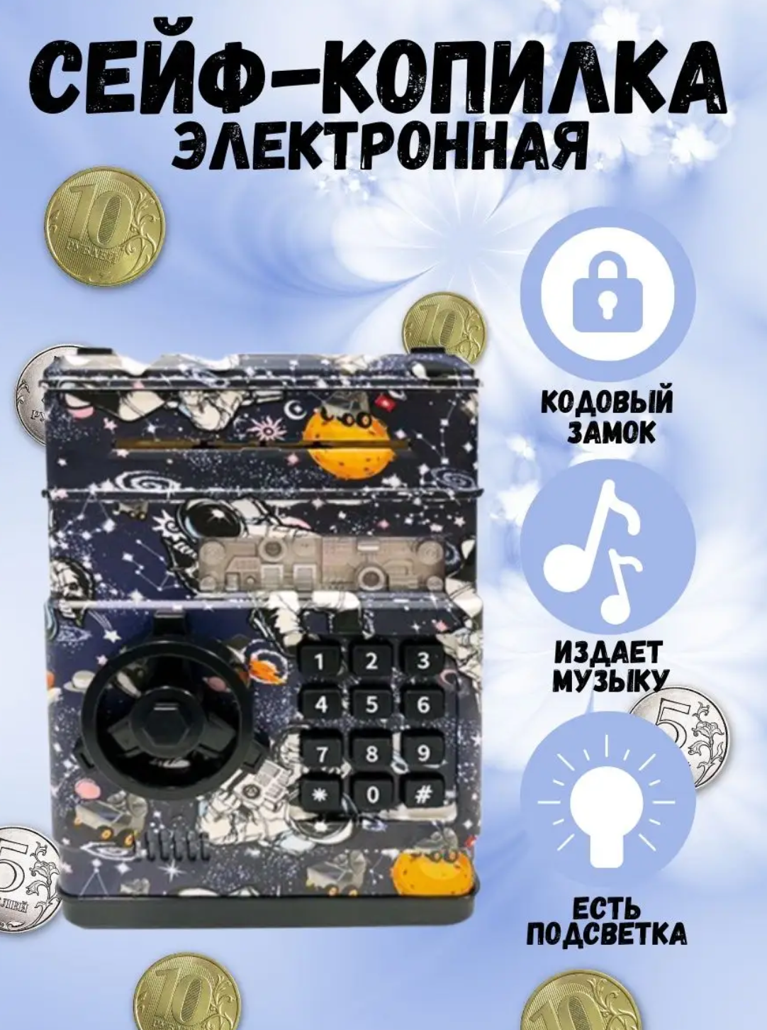 Купить Копилка сейф электронная для денег с кодовым замком и купюроприемником, цвет микс
