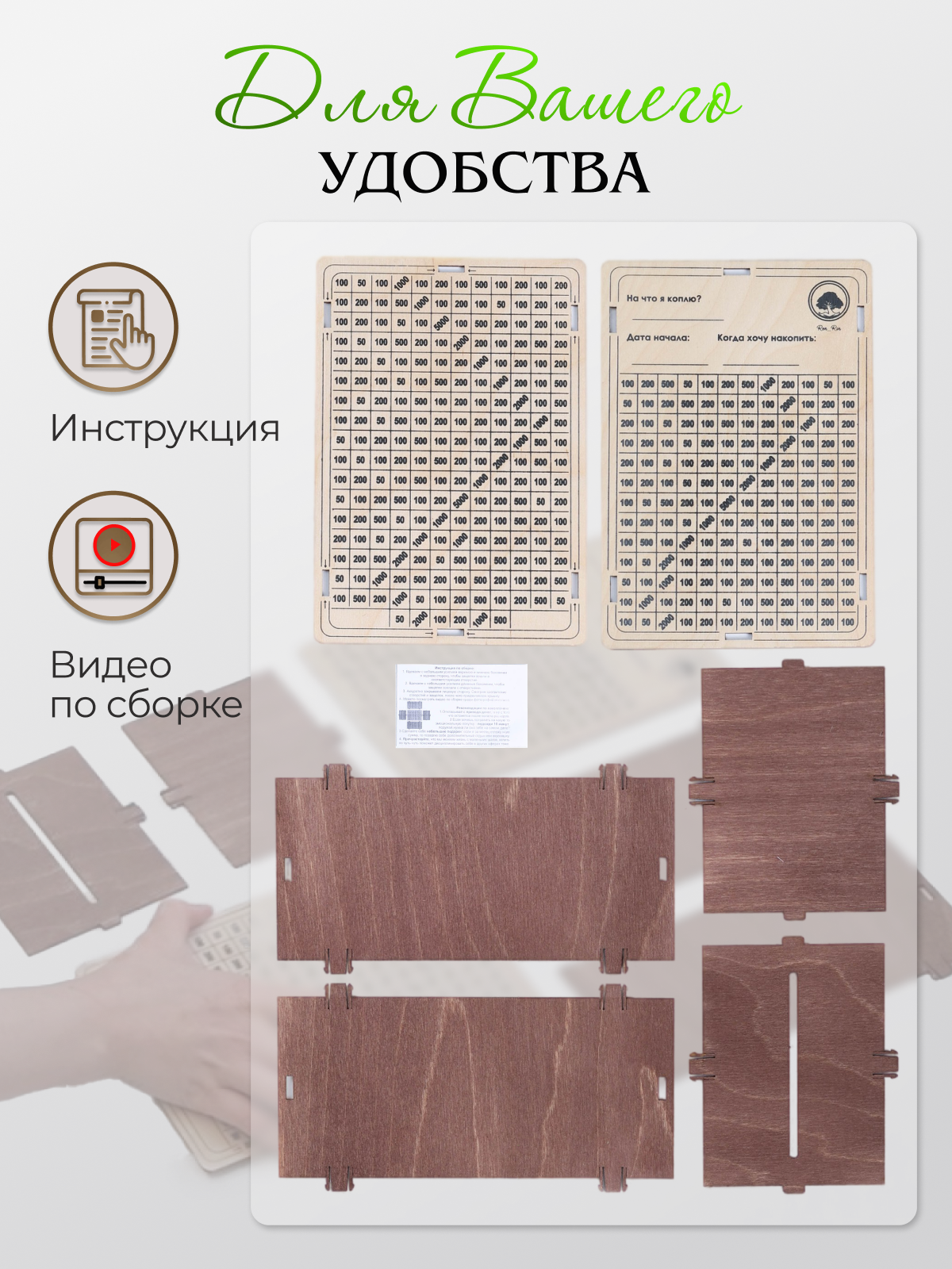 Купить Копилка деревянная для денег накопи 100000 за год легко собрать