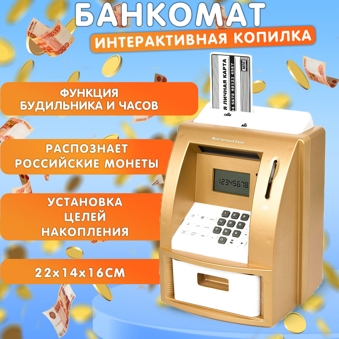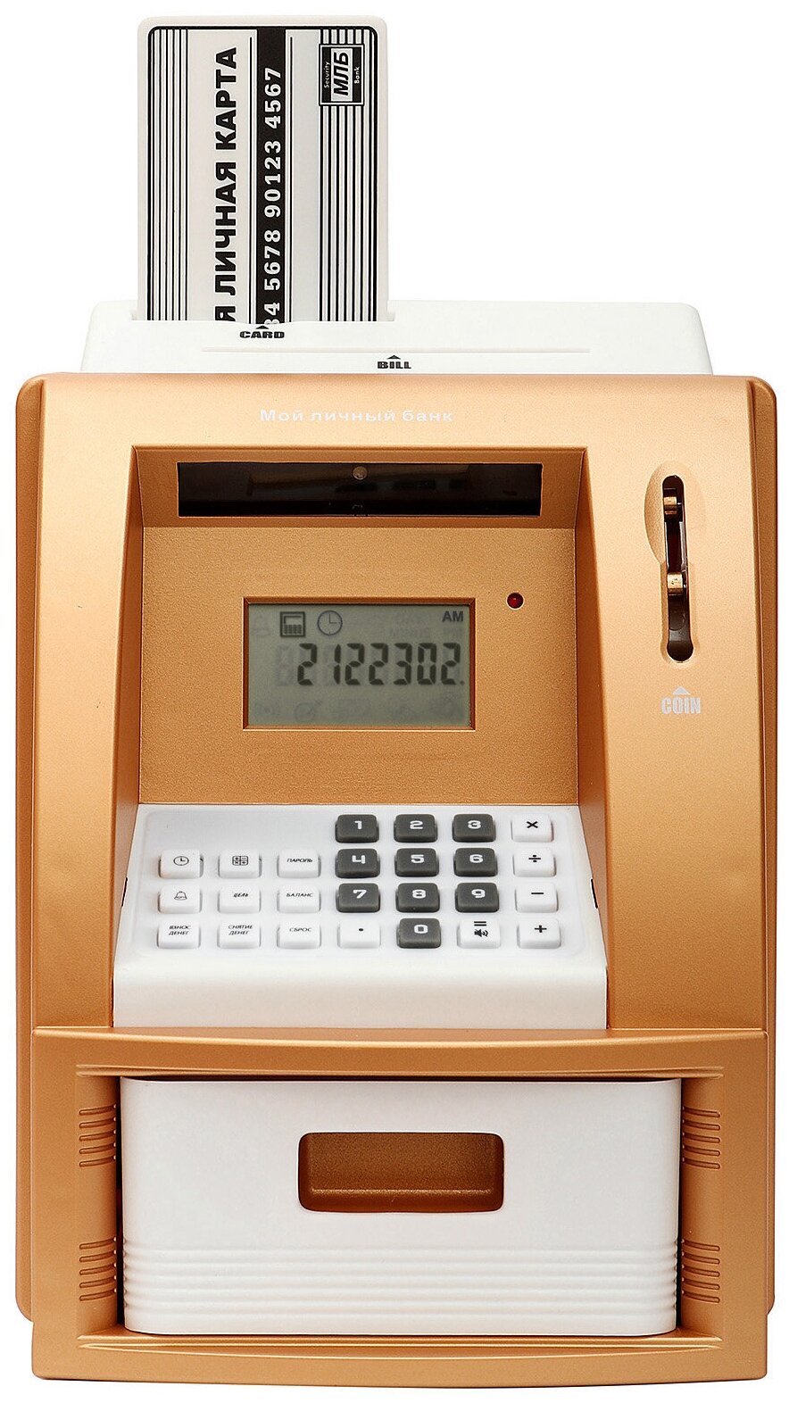 Купить Копилка Банкомат, копилка для монет и купюр, электронная копилка, копилка детская Эврика золотой 23 февраля, 8 марта