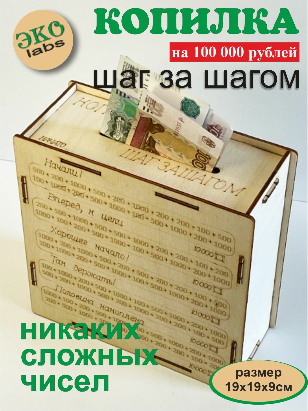 Купить Копилка деревянная "100000 ШАГ за шагом" / разборная многоразовая