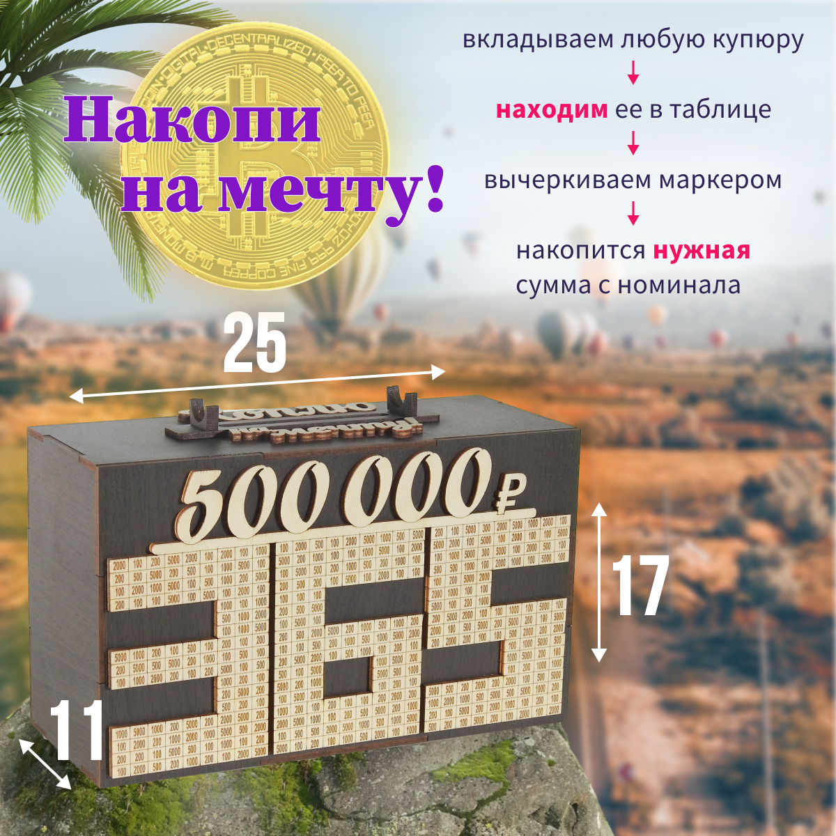 Деревянная копилка 365 дней " Коплю на мечту "