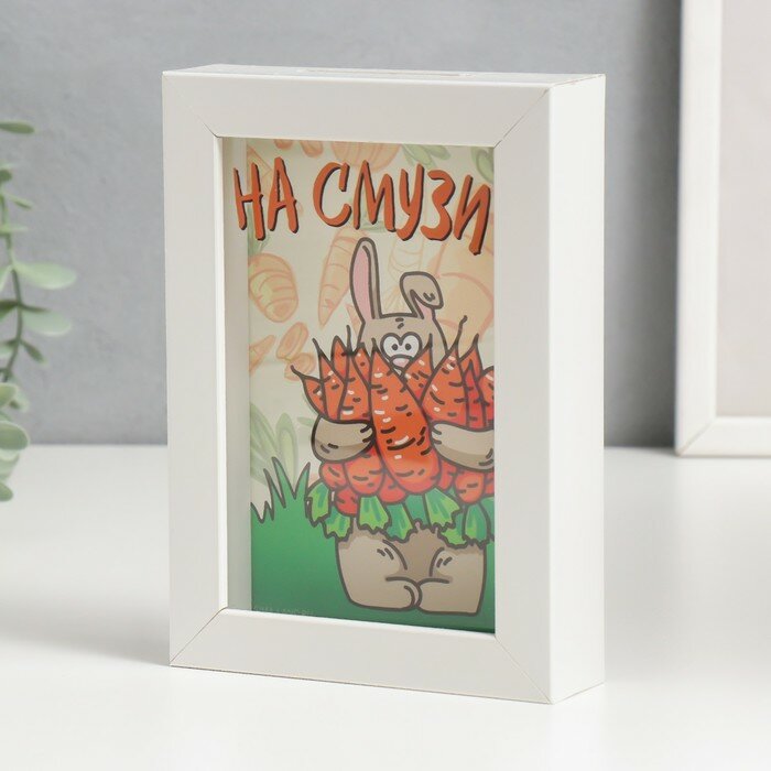 Копилка интерьерная пластик "Заяц с морковками - На смузи" 17х12х3,8 см интересное: