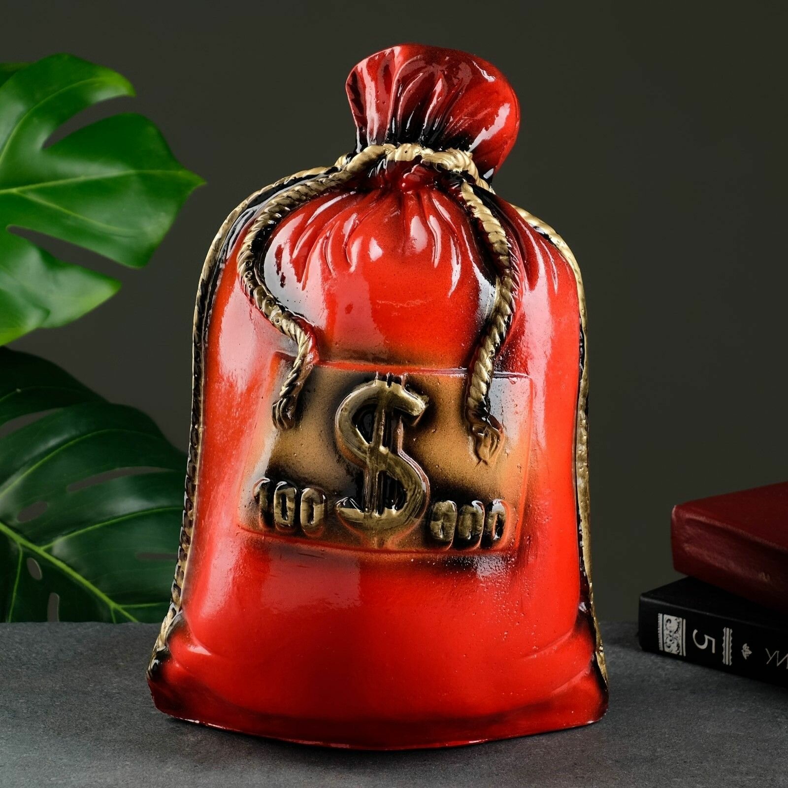 Купить Копилка "Мешок сто тысяч" красный, 14х22х32см