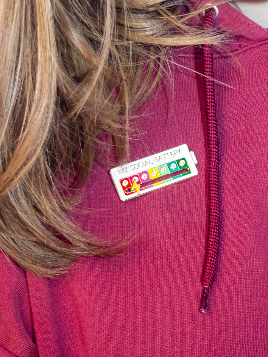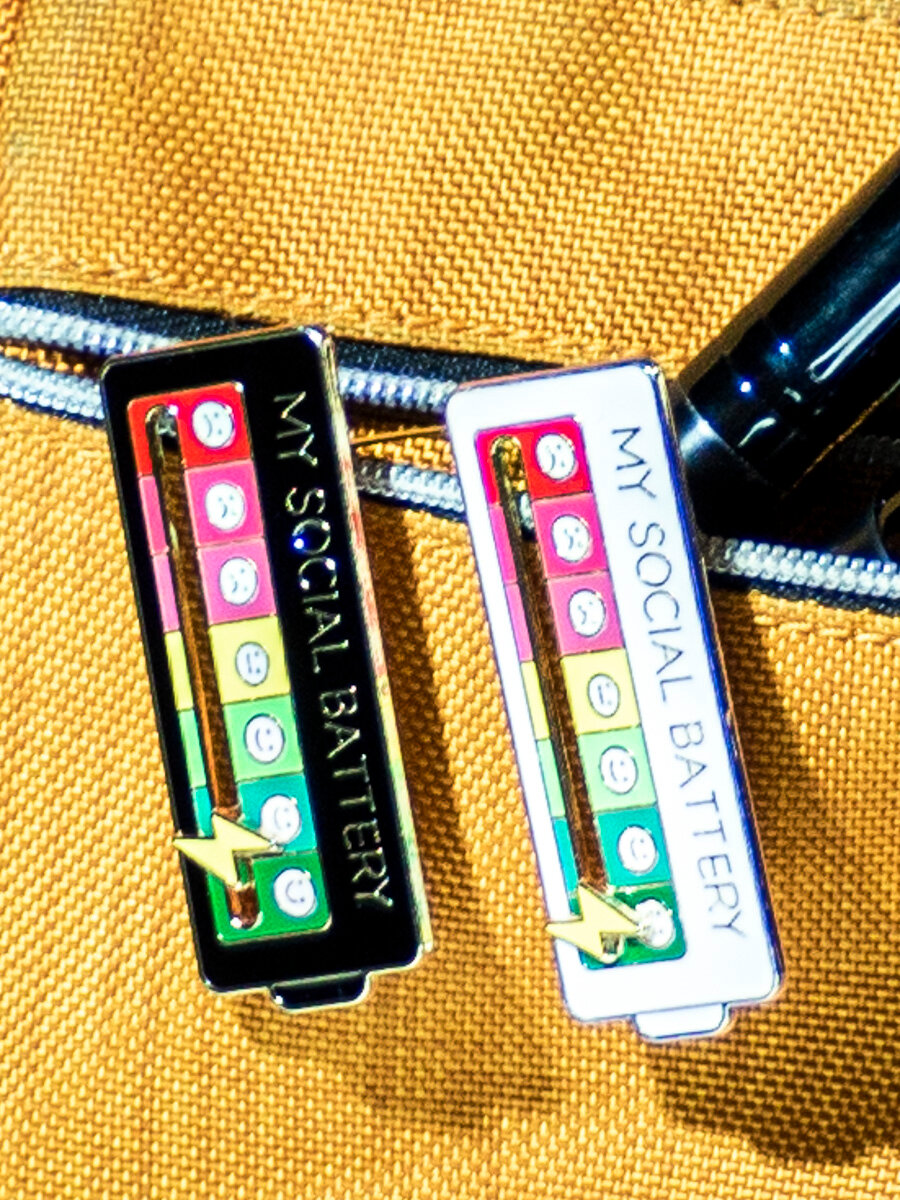 Купить Значок металлический "Моя социальная батарея" на одежду и рюкзак Белый