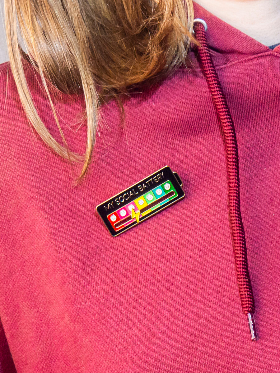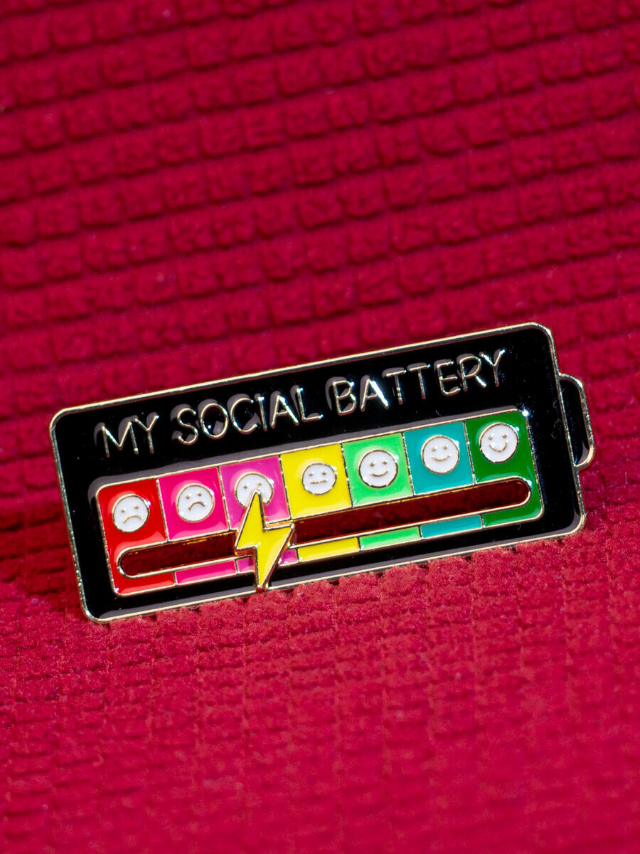 Купить Значок металлический "Моя социальная батарея" на одежду и рюкзак Черный