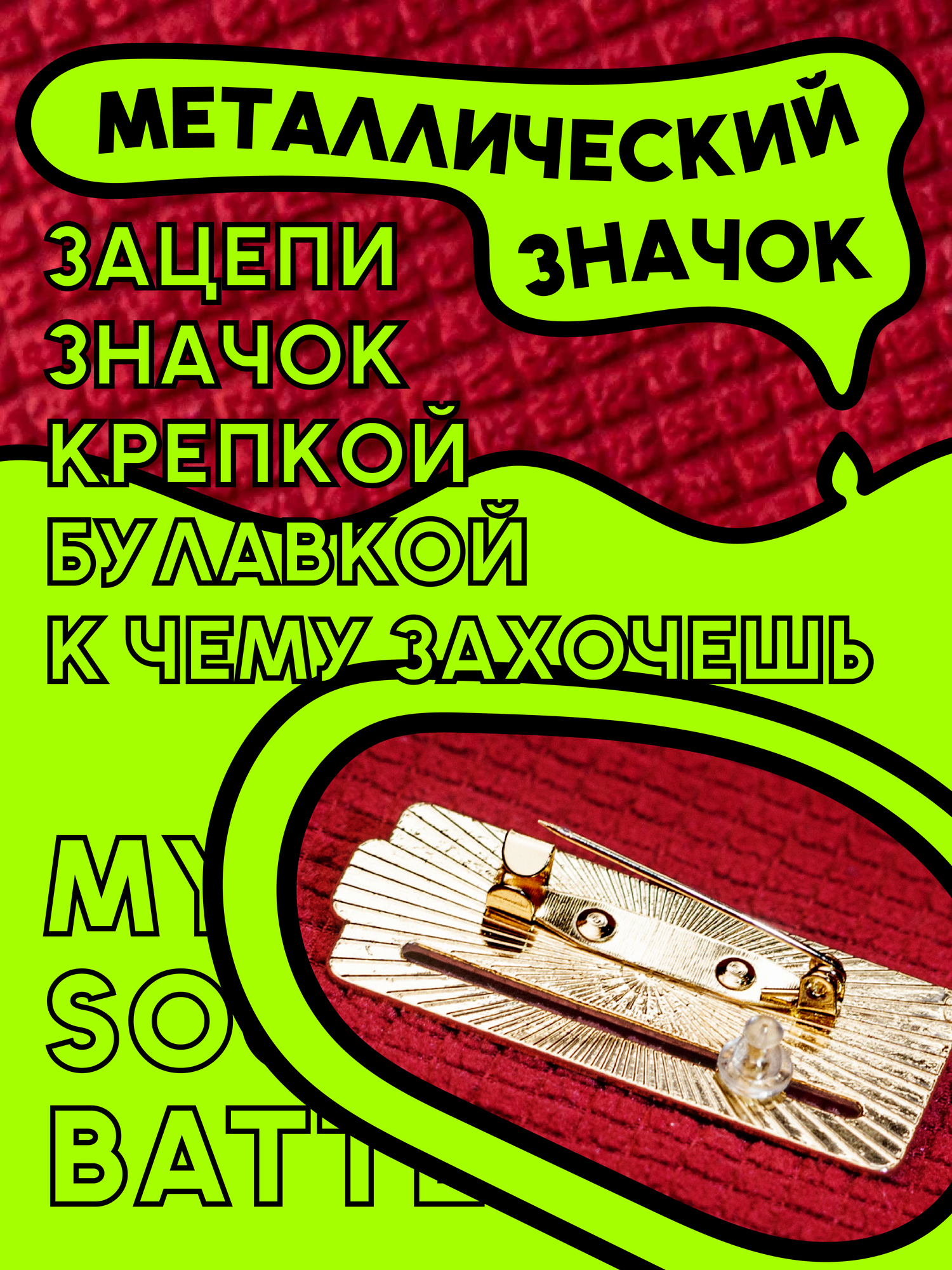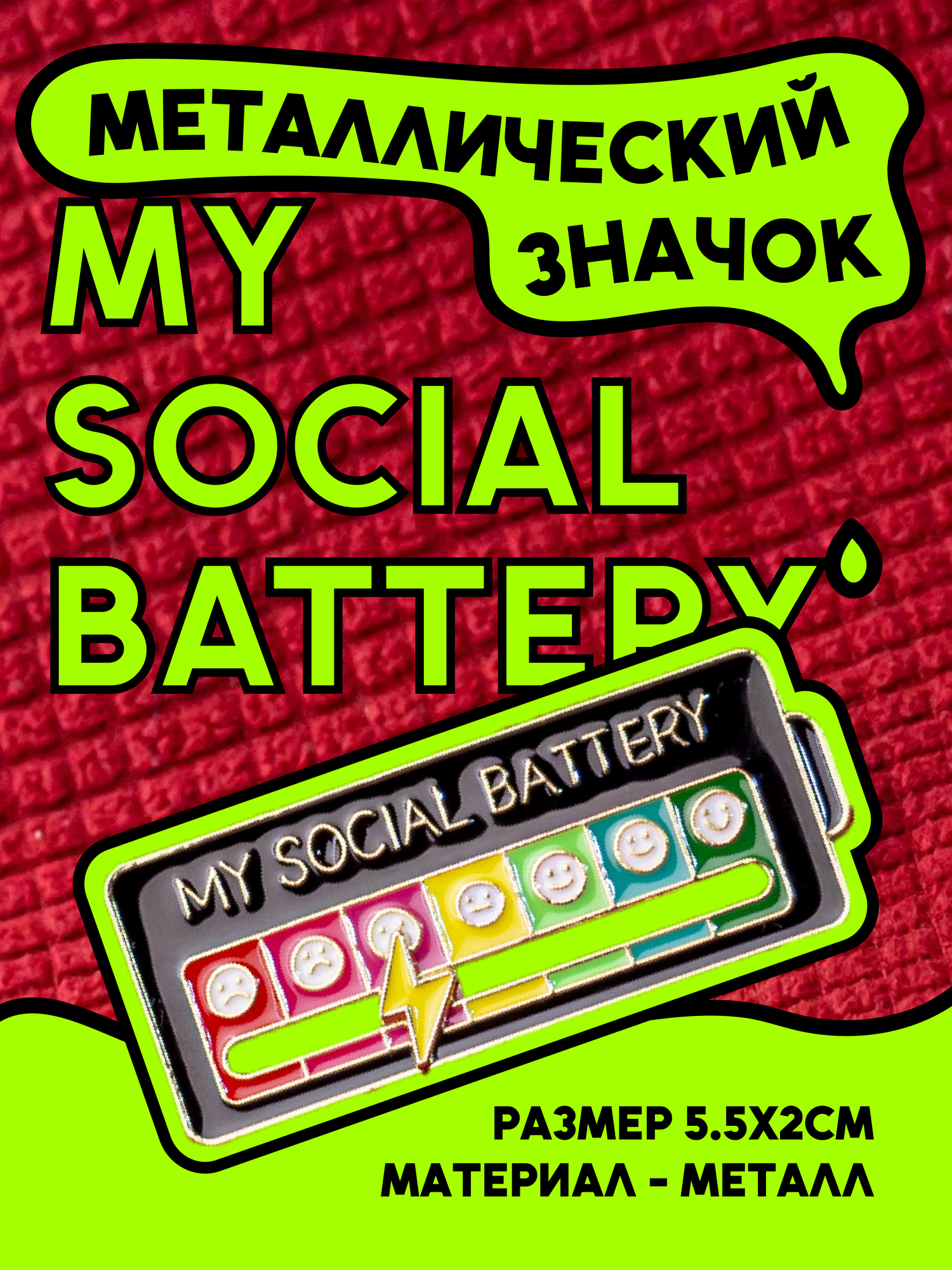 Значок металлический "Моя социальная батарея" на одежду и рюкзак Черный интересное: