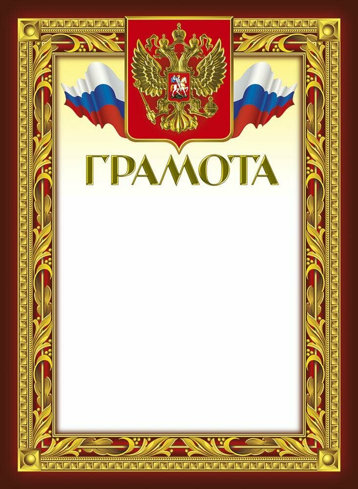 Грамота КНР А4, синяя рамка, герб, триколор, 230г|кв.м