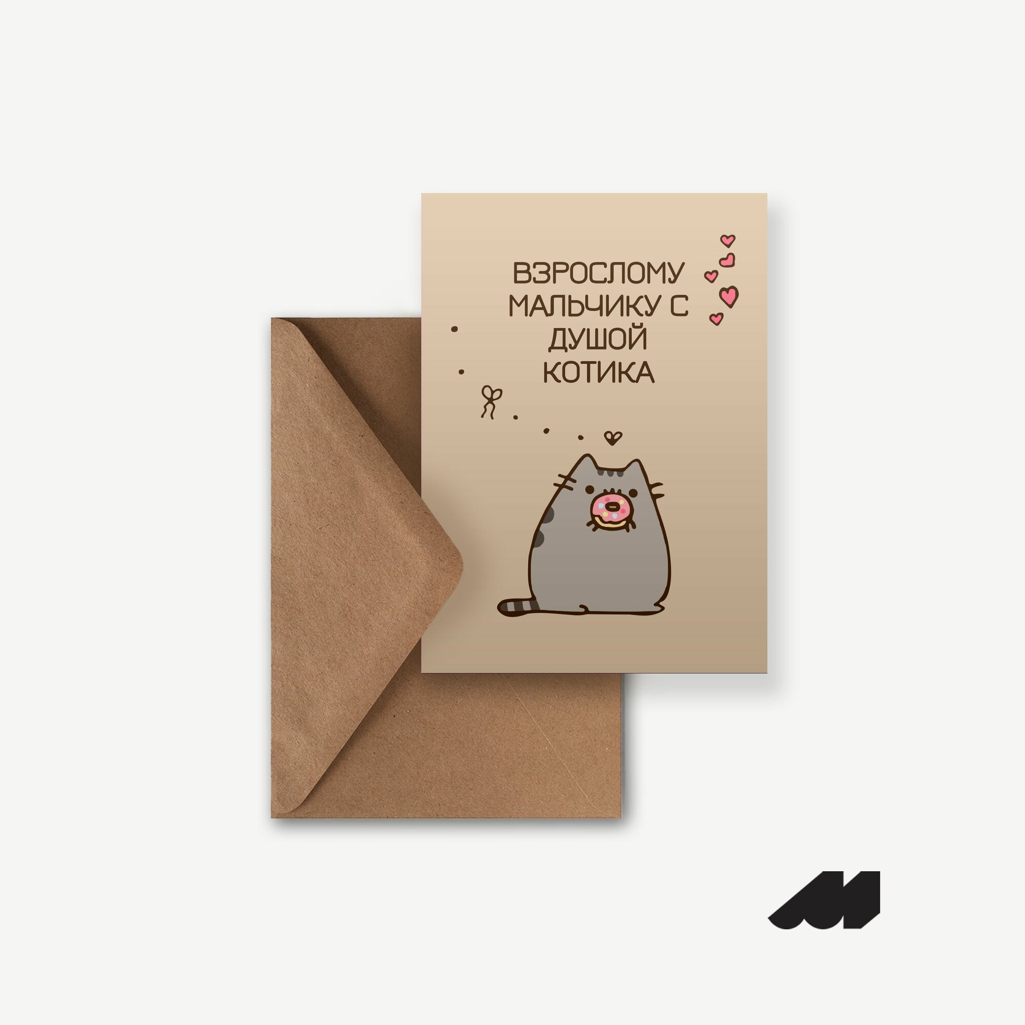 Купить Дизайнерская открытка Meswero / Взрослому мальчику с душой котика / с подарочным конвертом / 10х15