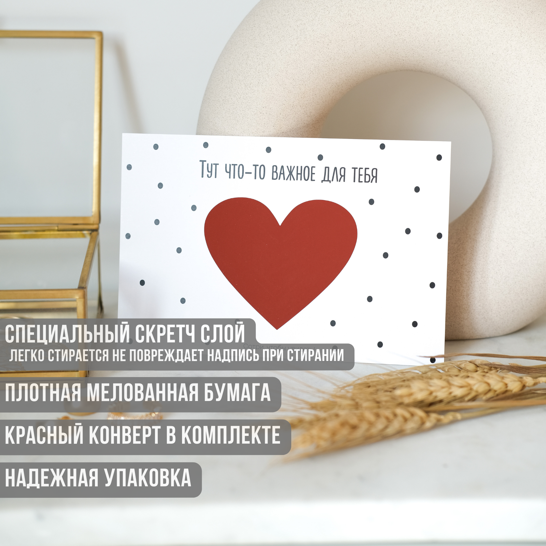 Купить Скретч открытка с конвертом "Люблю тебя" красное сердечко