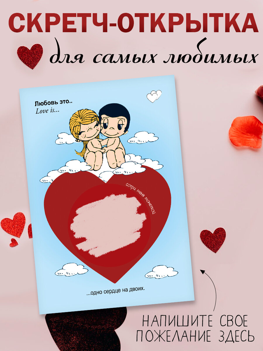 Скретч открытка любимому, подруге, девушке в конверте Love is интересное: