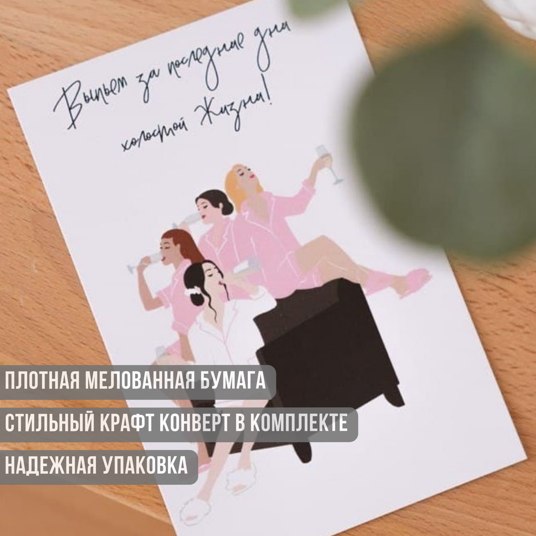 Открытка с конвертом "Девичник перед свадьбой" интересное: