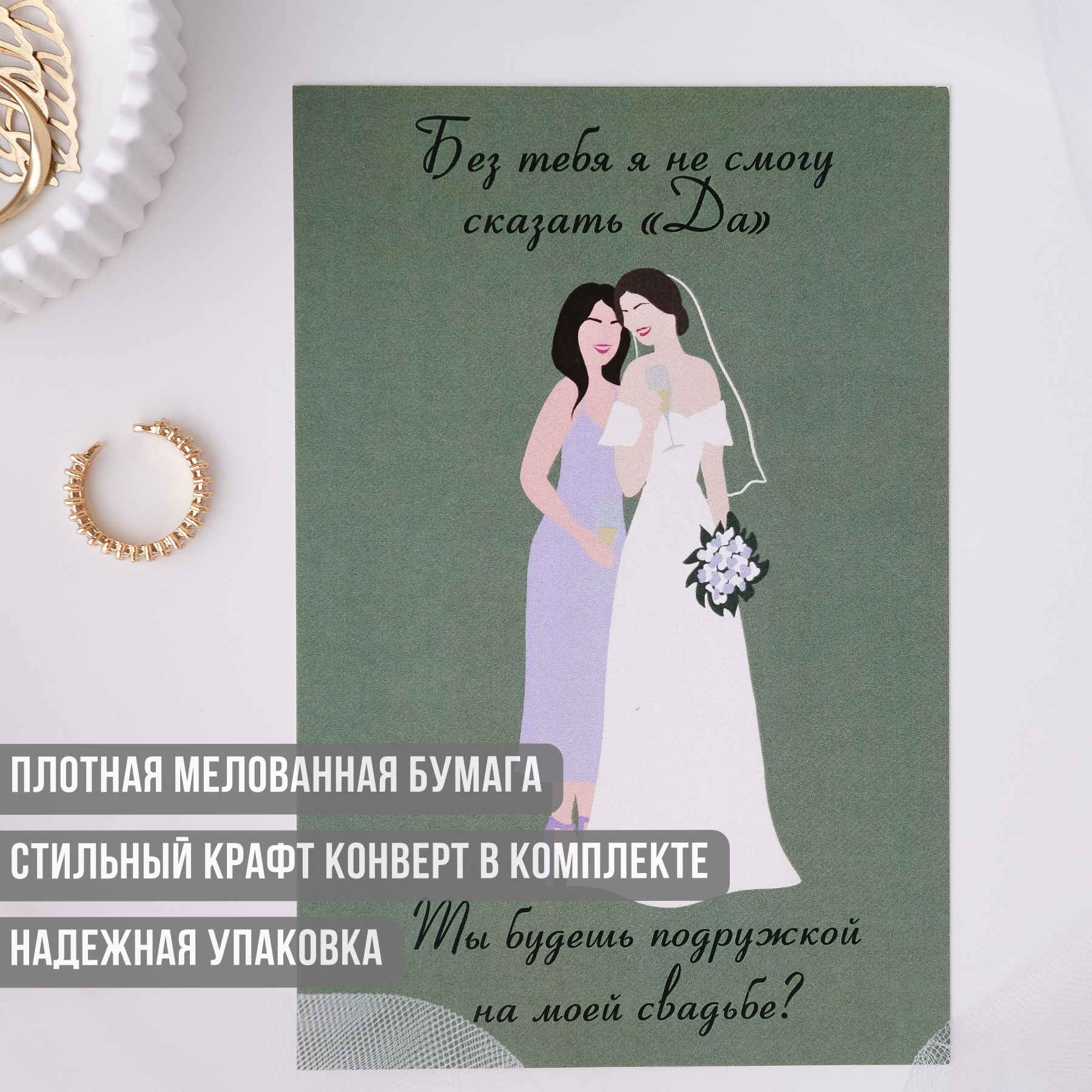 Открытка с конвертом "Для подружки невесты" интересное: