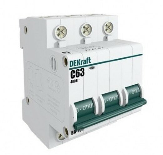 Автоматический выключатель Dekraft ВА-101 (11084DEK) 3P 63А тип C 4,5 кА 400 В на DIN-рейку