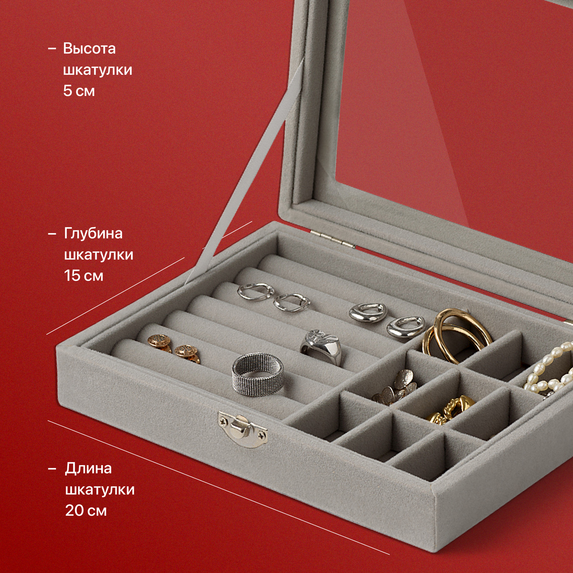 Шкатулка для украшений, REVOLUT, Сундук для хранения ювелирных изделий, Органайзер для колец, сережек и часов, Серая интересное: