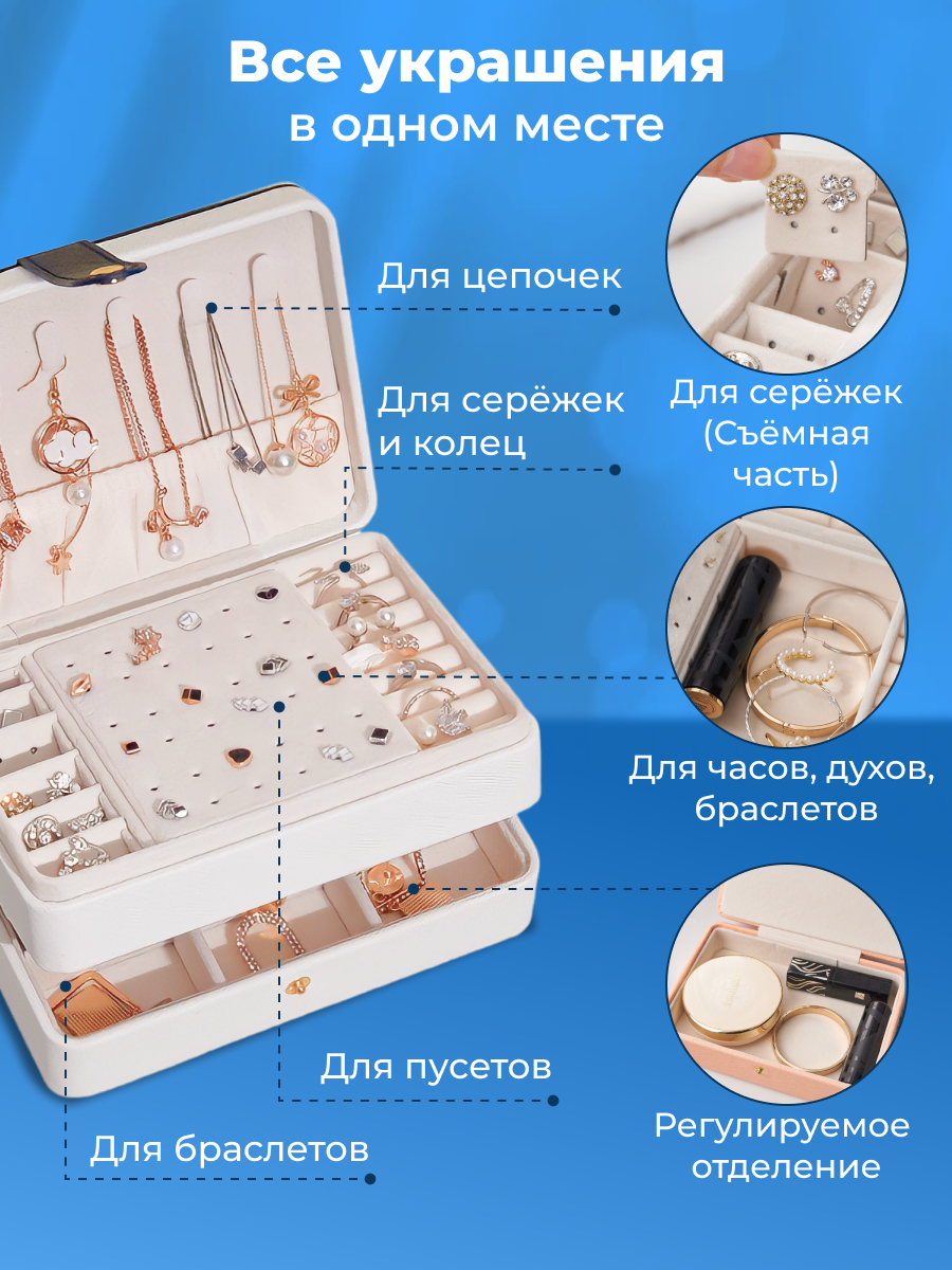 Двухъярусная шкатулка для украшений с отсеками